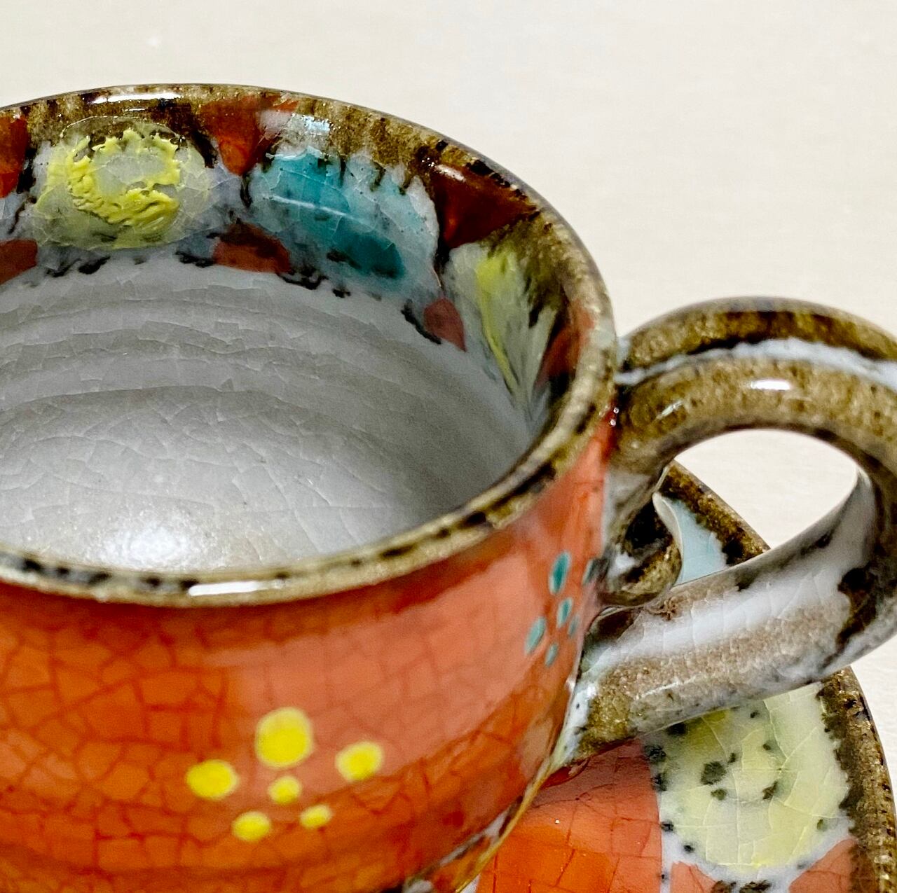 色鮮やかな赤絵が目を惹く、コーヒー碗皿です