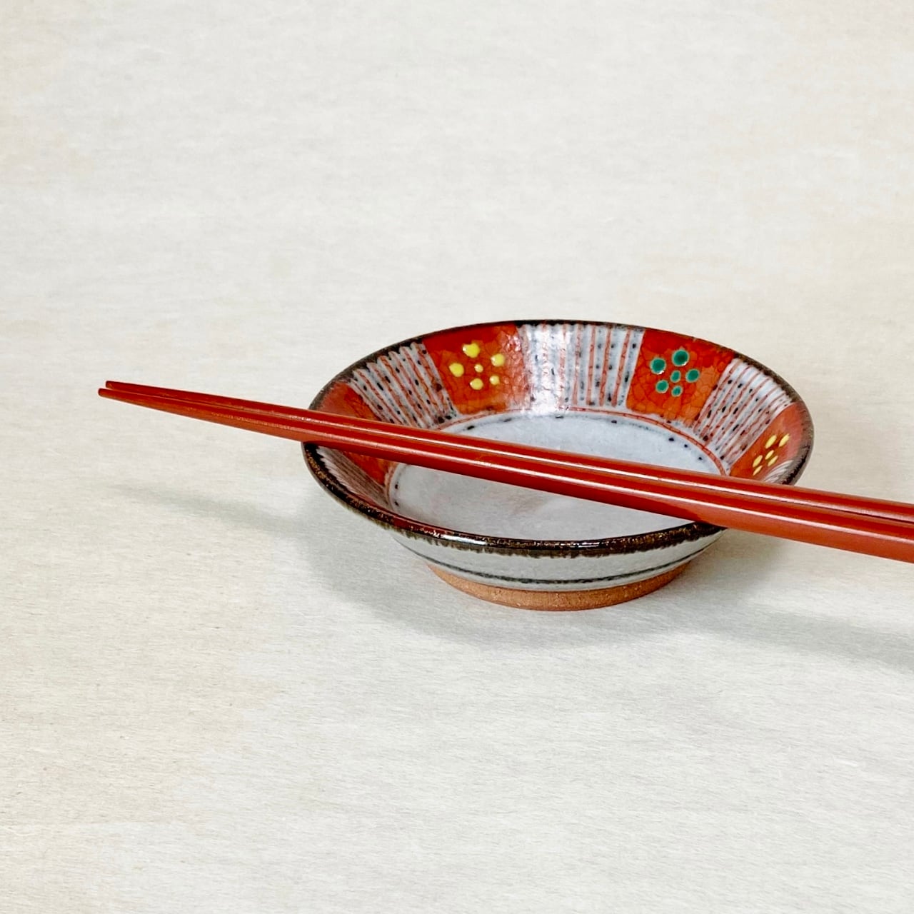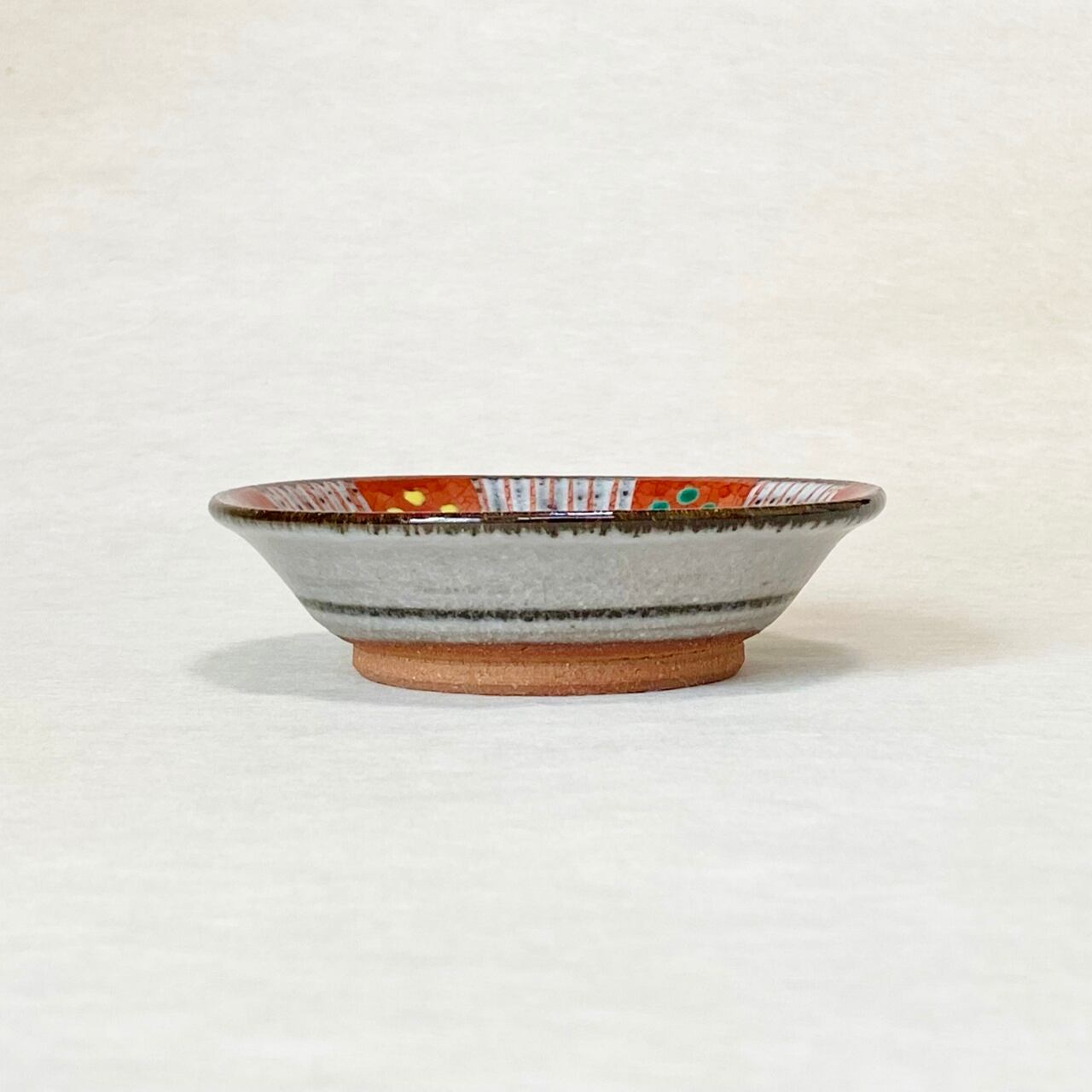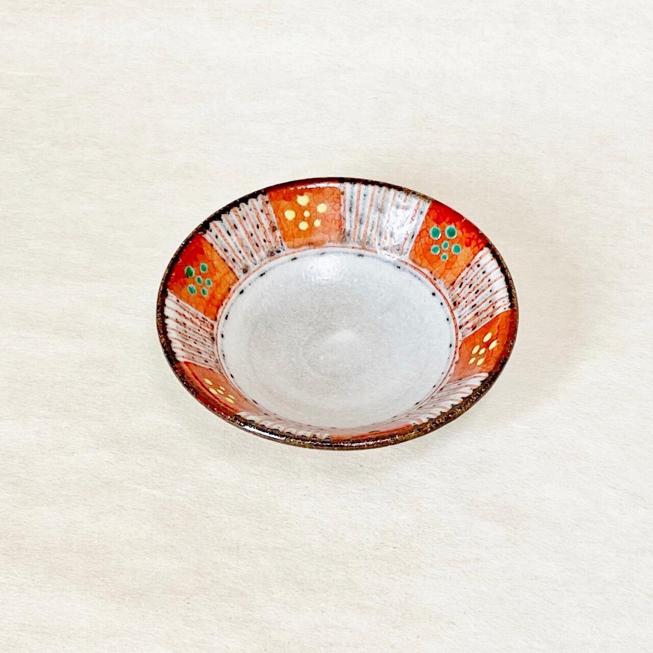 <赫三郎窯>赤絵 ト草梅鉢紋 小鉢