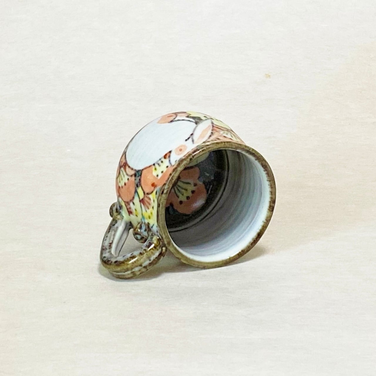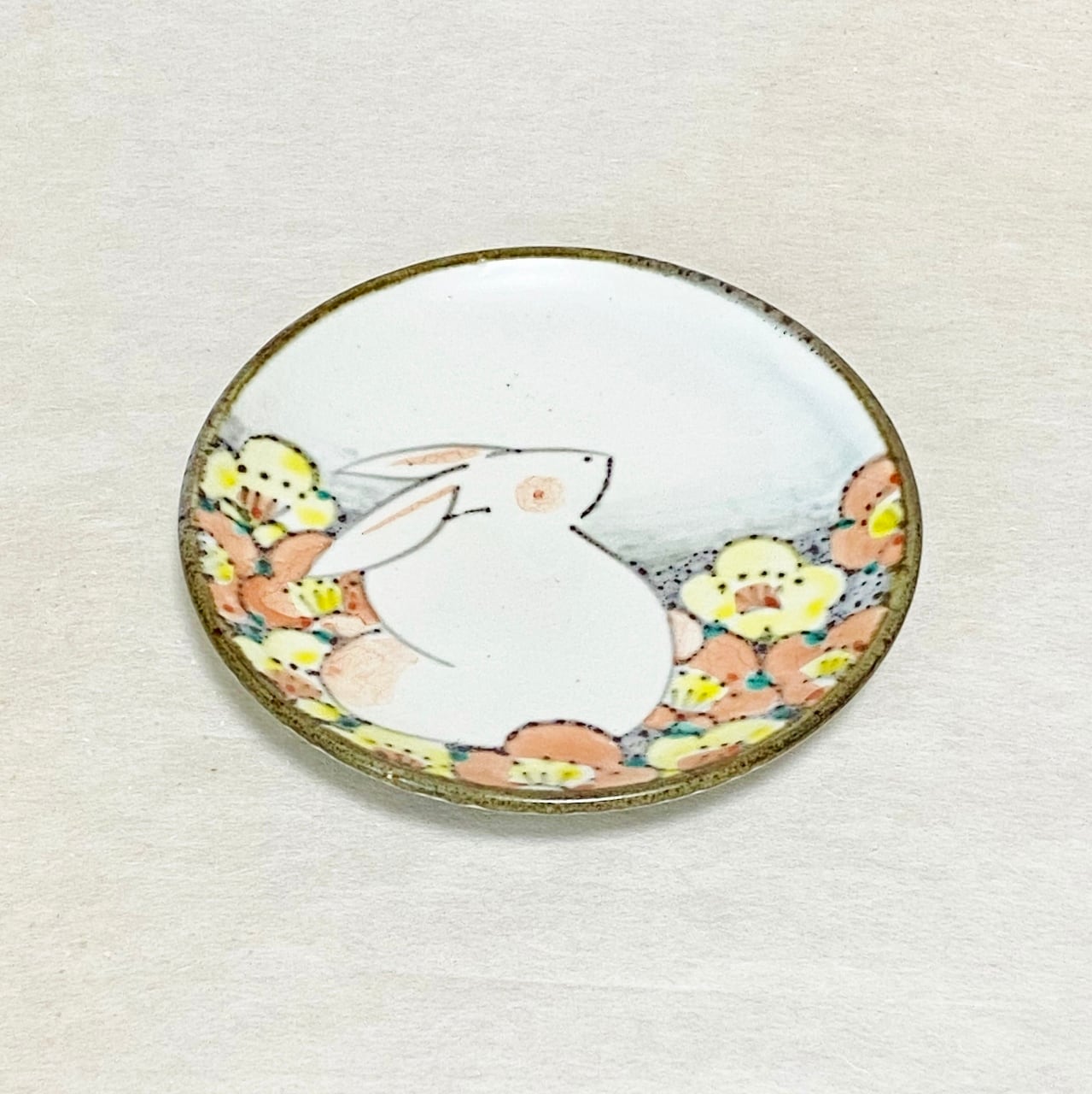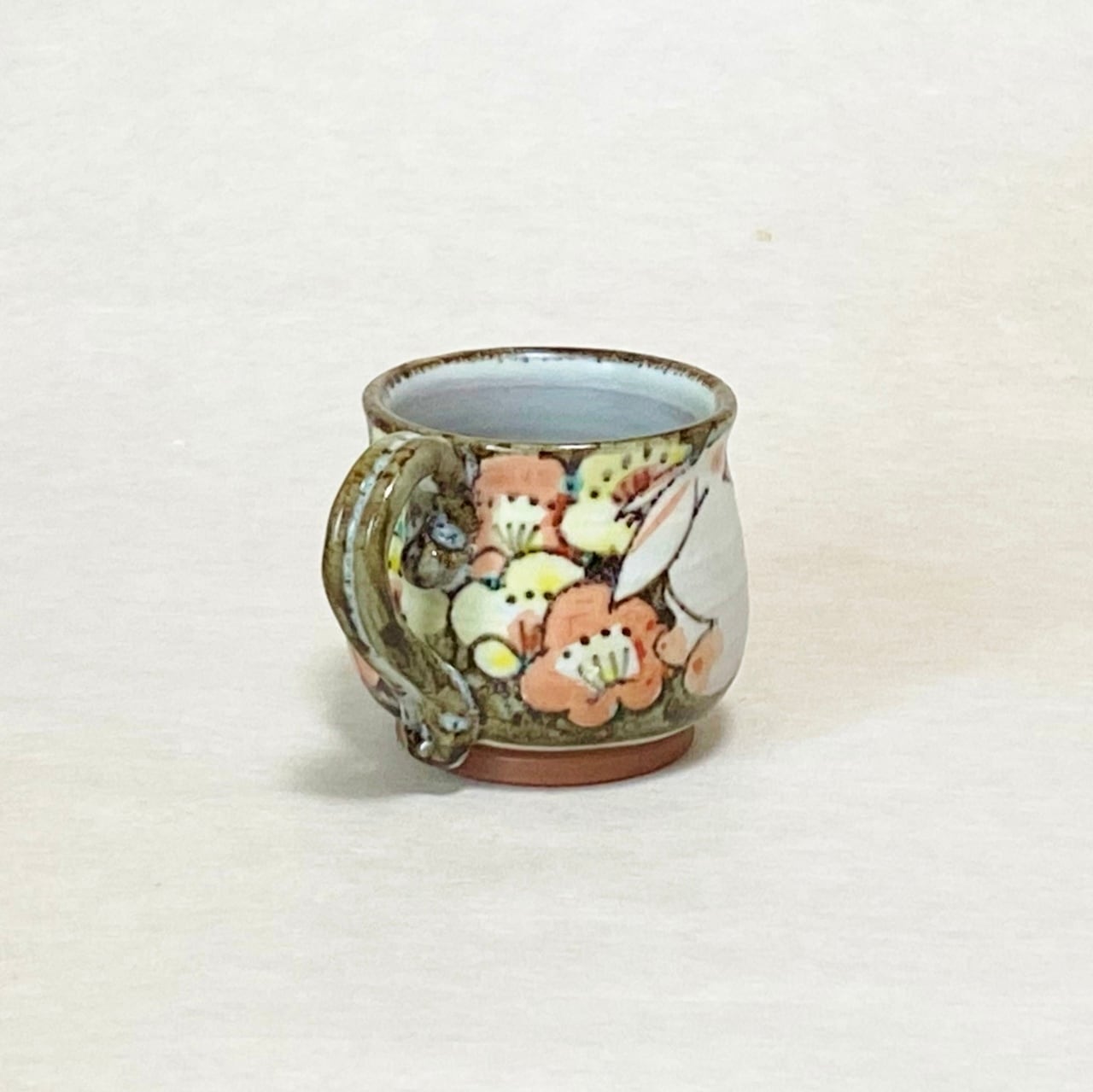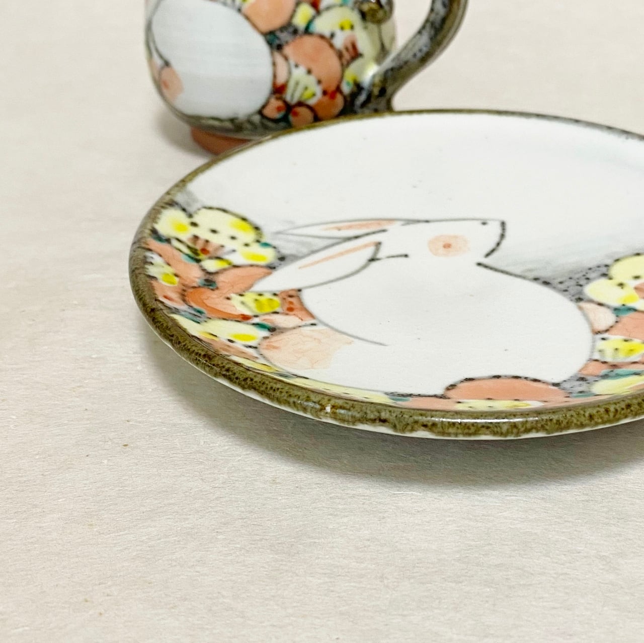 <赫三郎窯>色絵 花うさぎ コーヒー碗皿