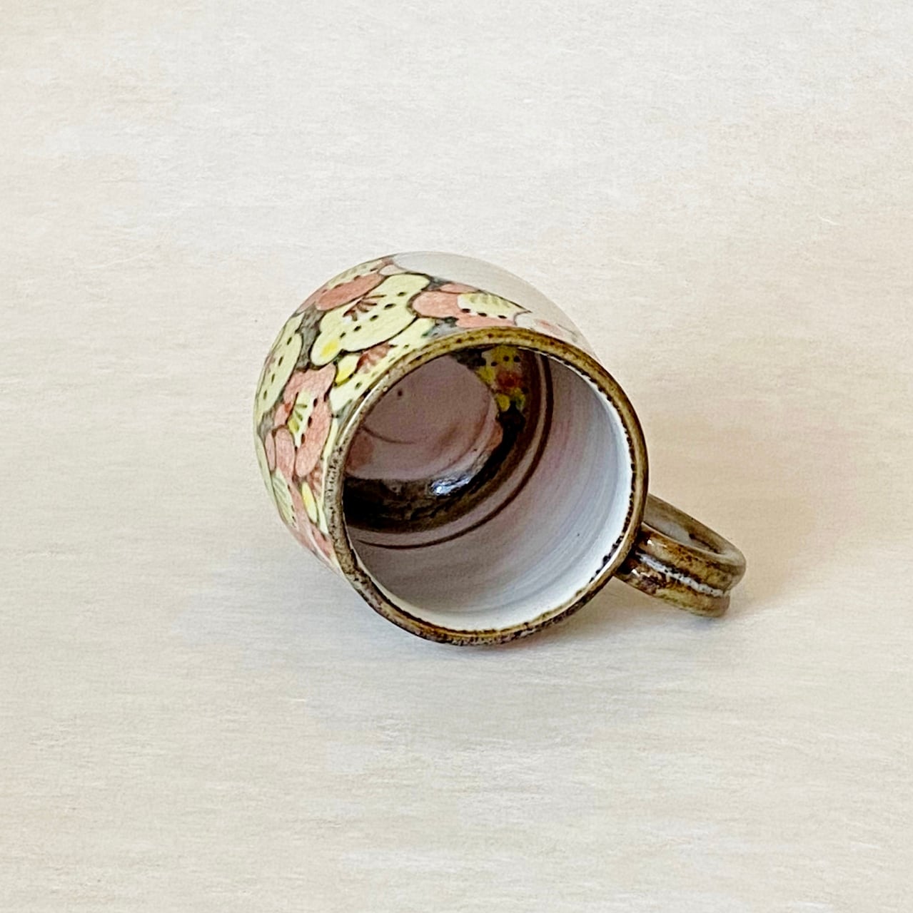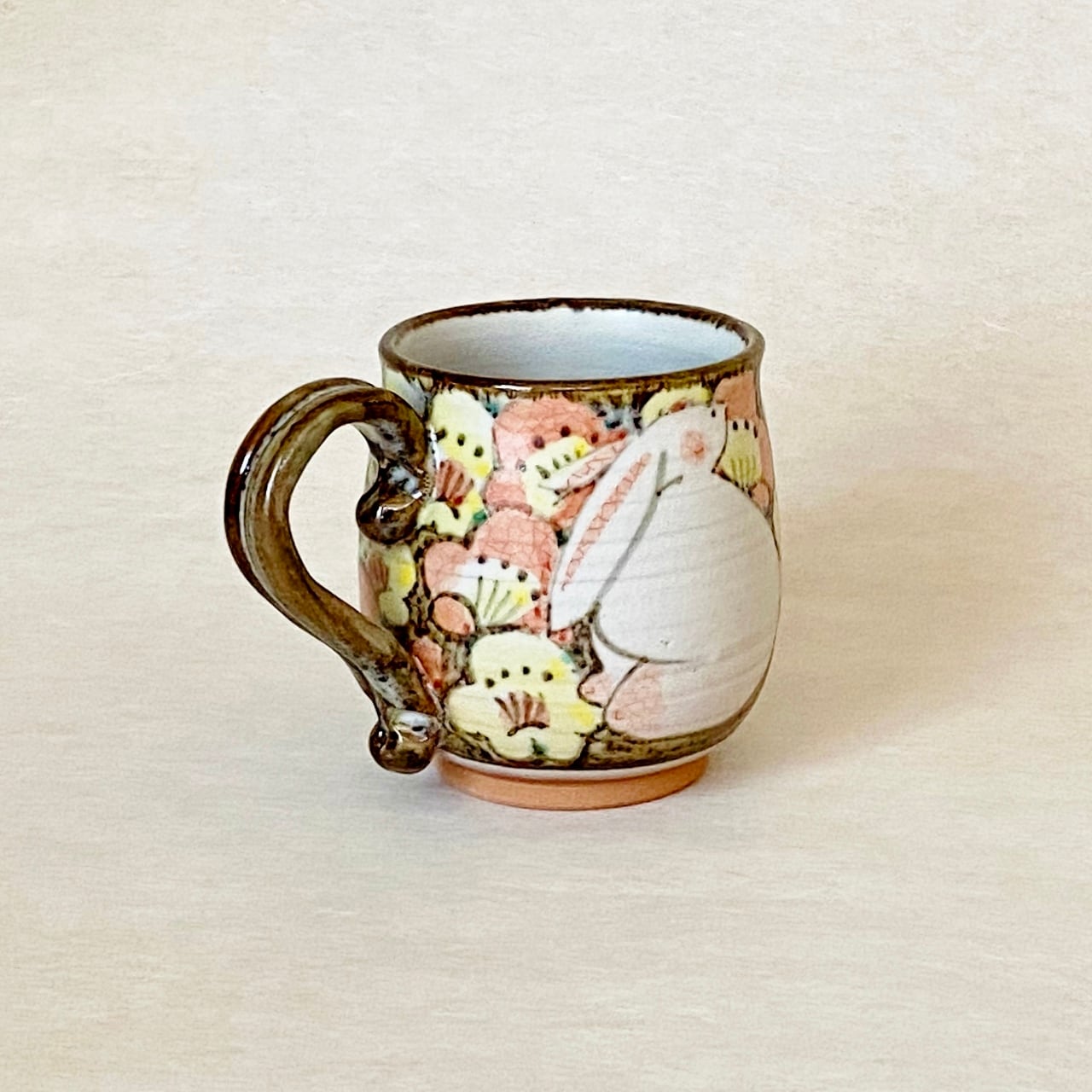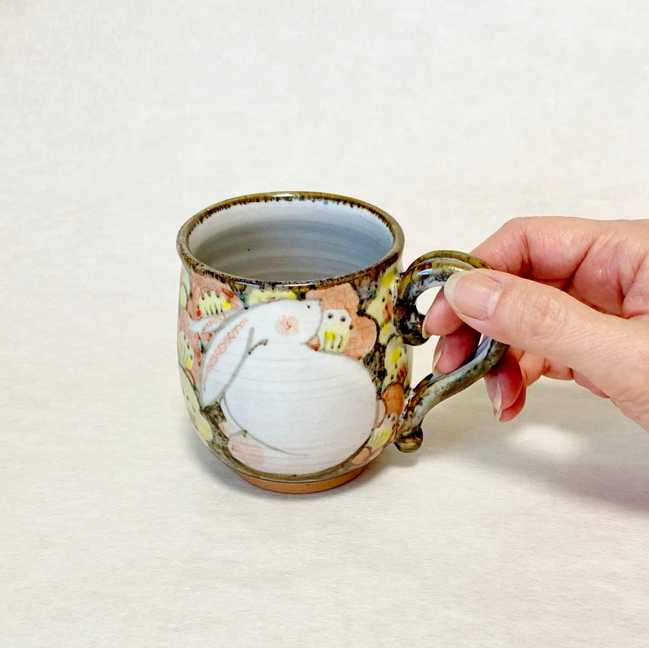 <赫三郎窯>色絵 花うさぎ マグカップ