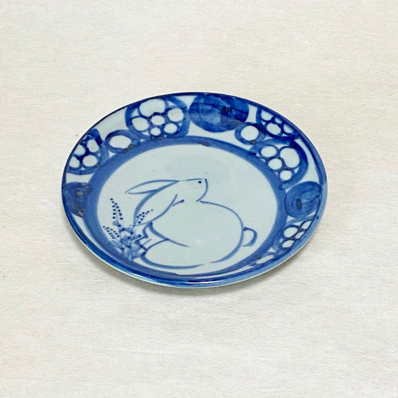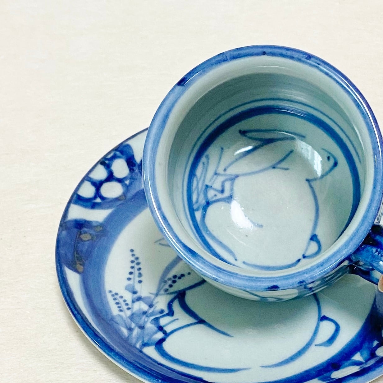 <赫三郎窯>染付 花うさぎ コーヒー碗皿
