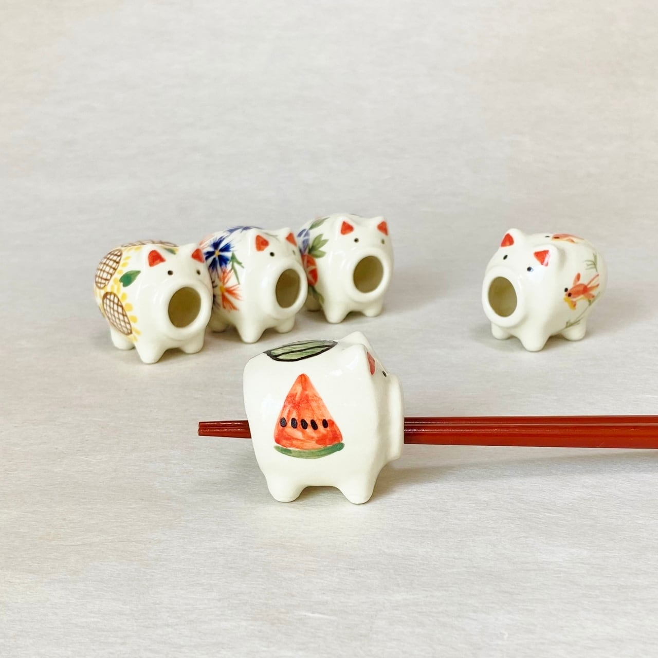 見ているだけで笑顔になる、蚊取り豚の形をしたお箸置きです