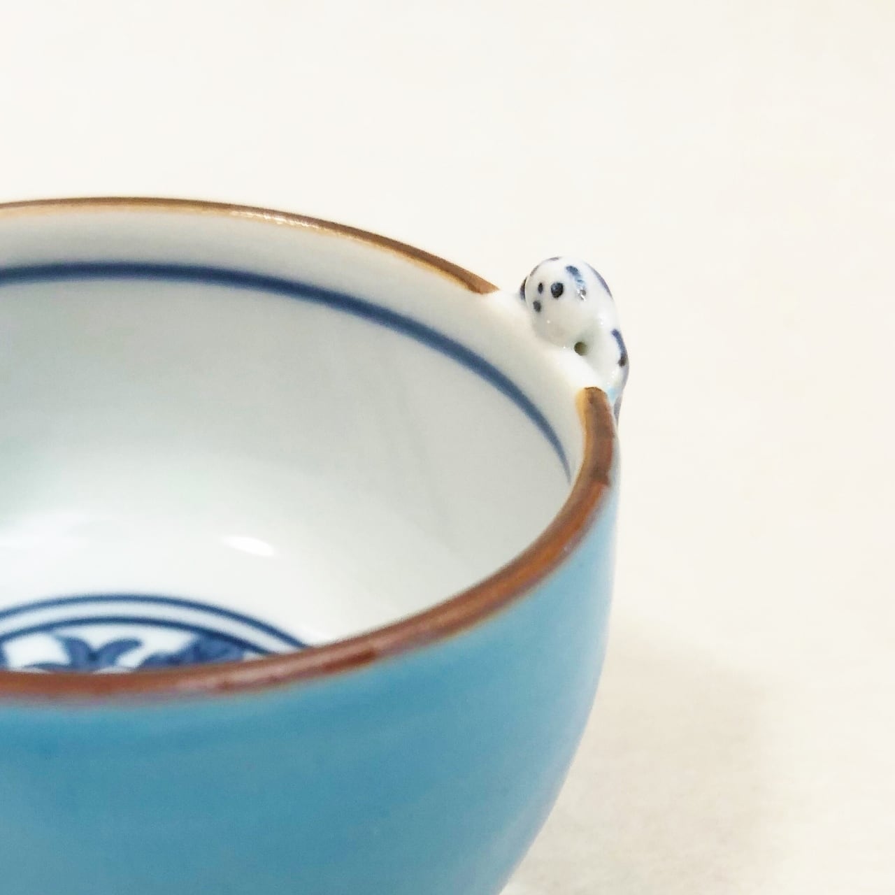 中には染付でお花が描かれていて、それを唐子が可愛いお顔で中を覗いています