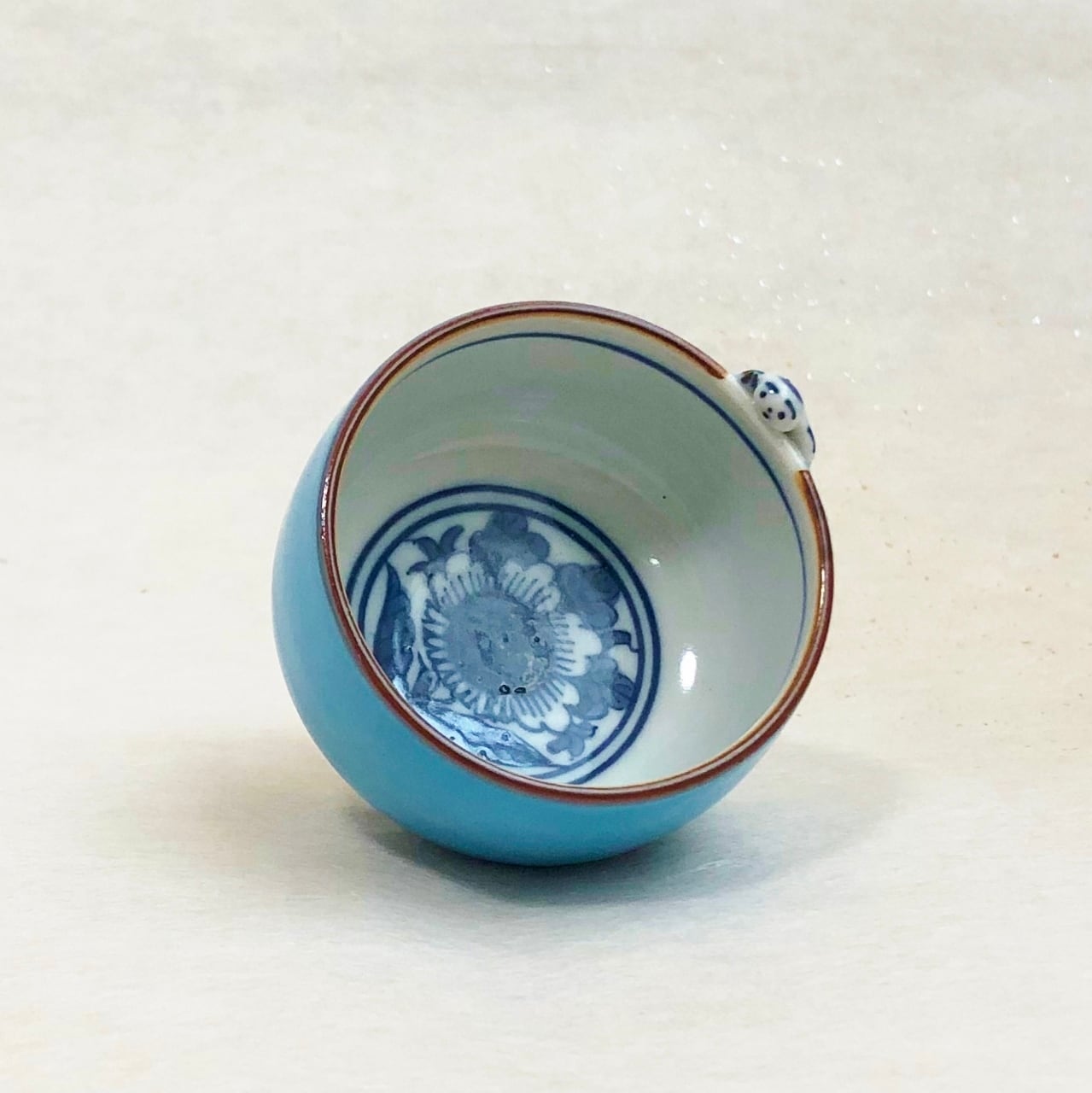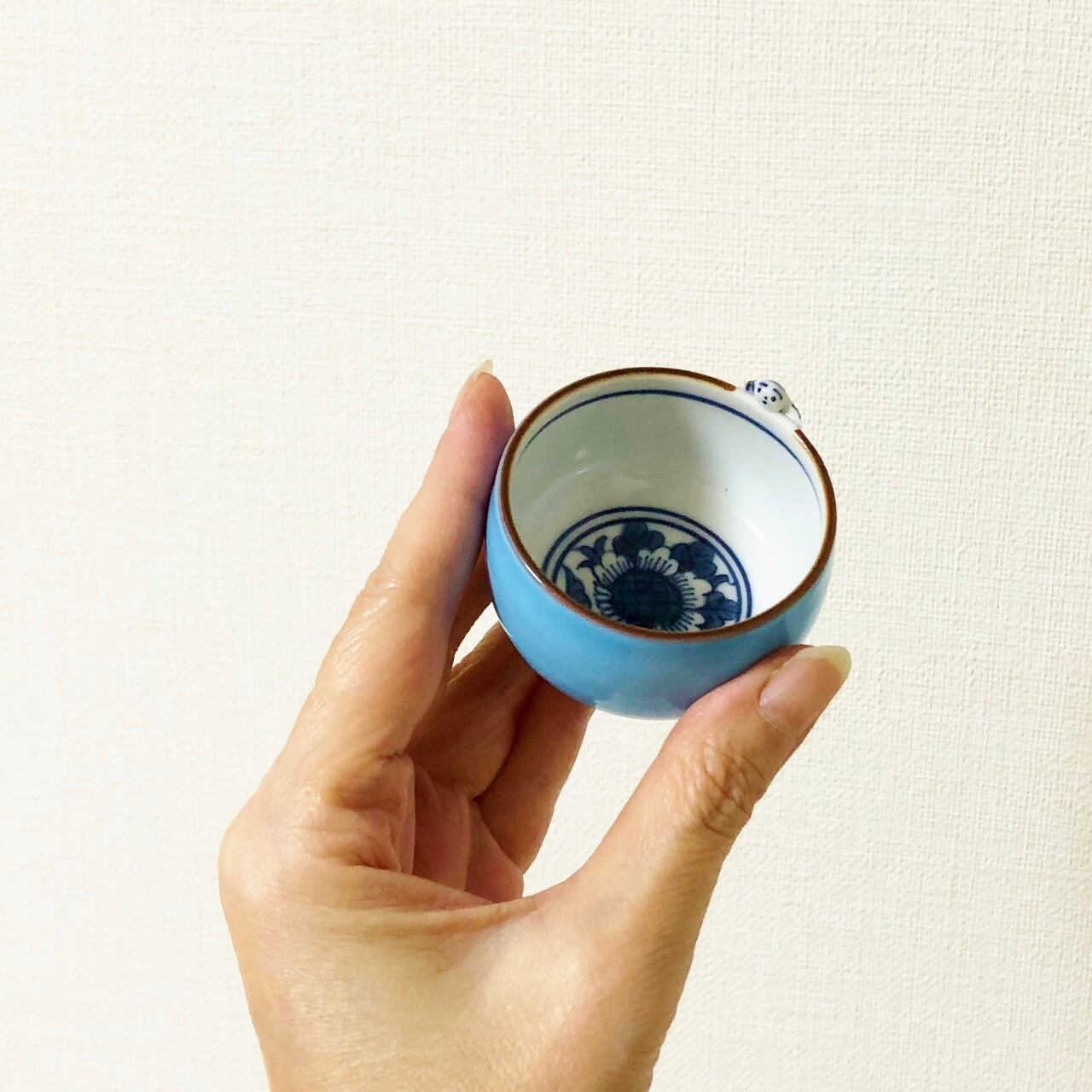 <昇峰窯>色交趾唐子付き ぐい吞み(水色)