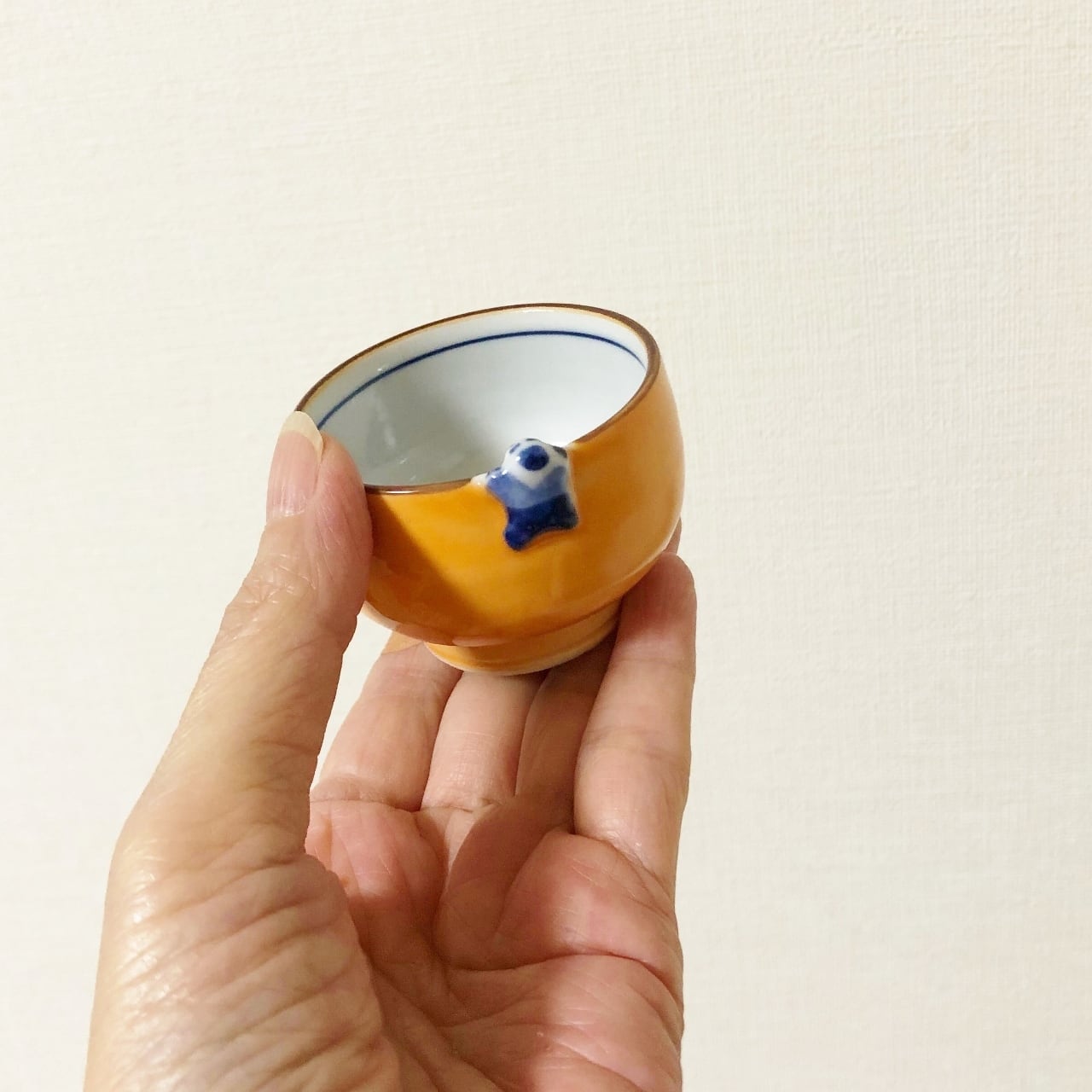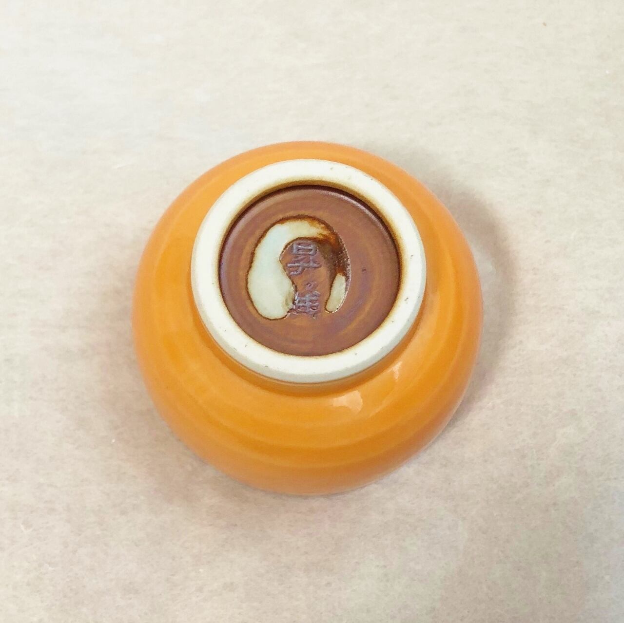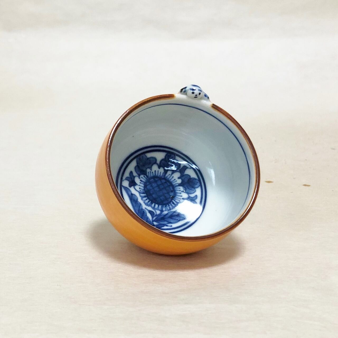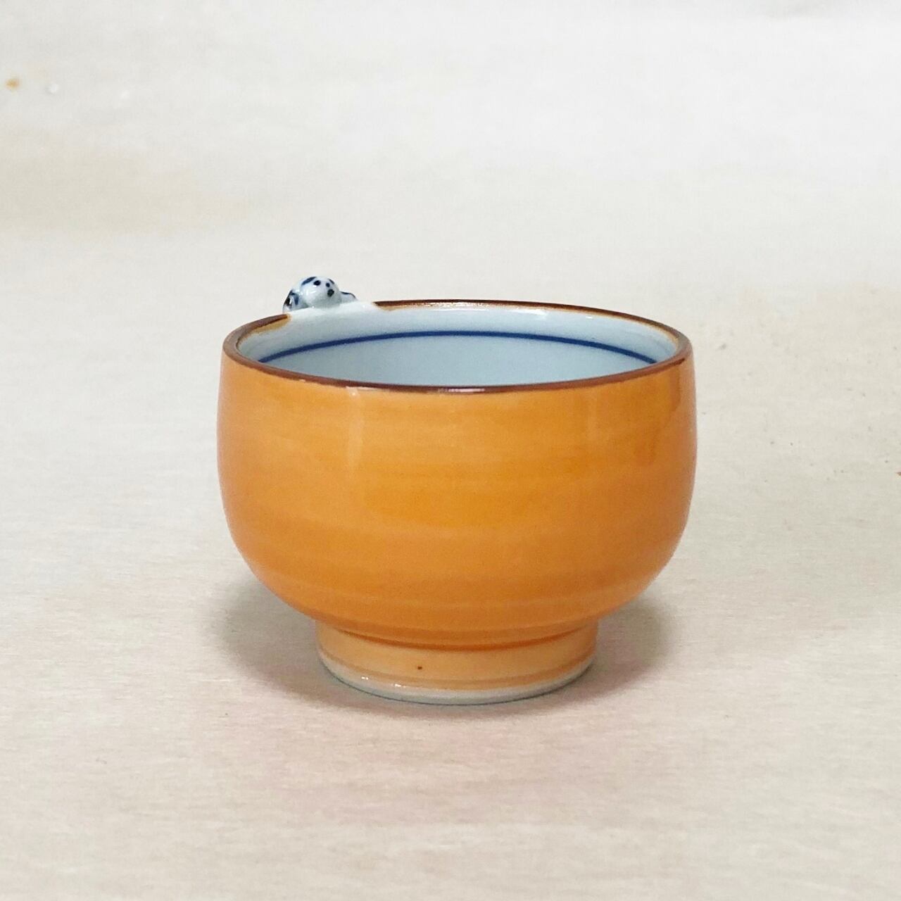 <昇峰窯>色交趾唐子付き ぐい吞み(オレンジ)