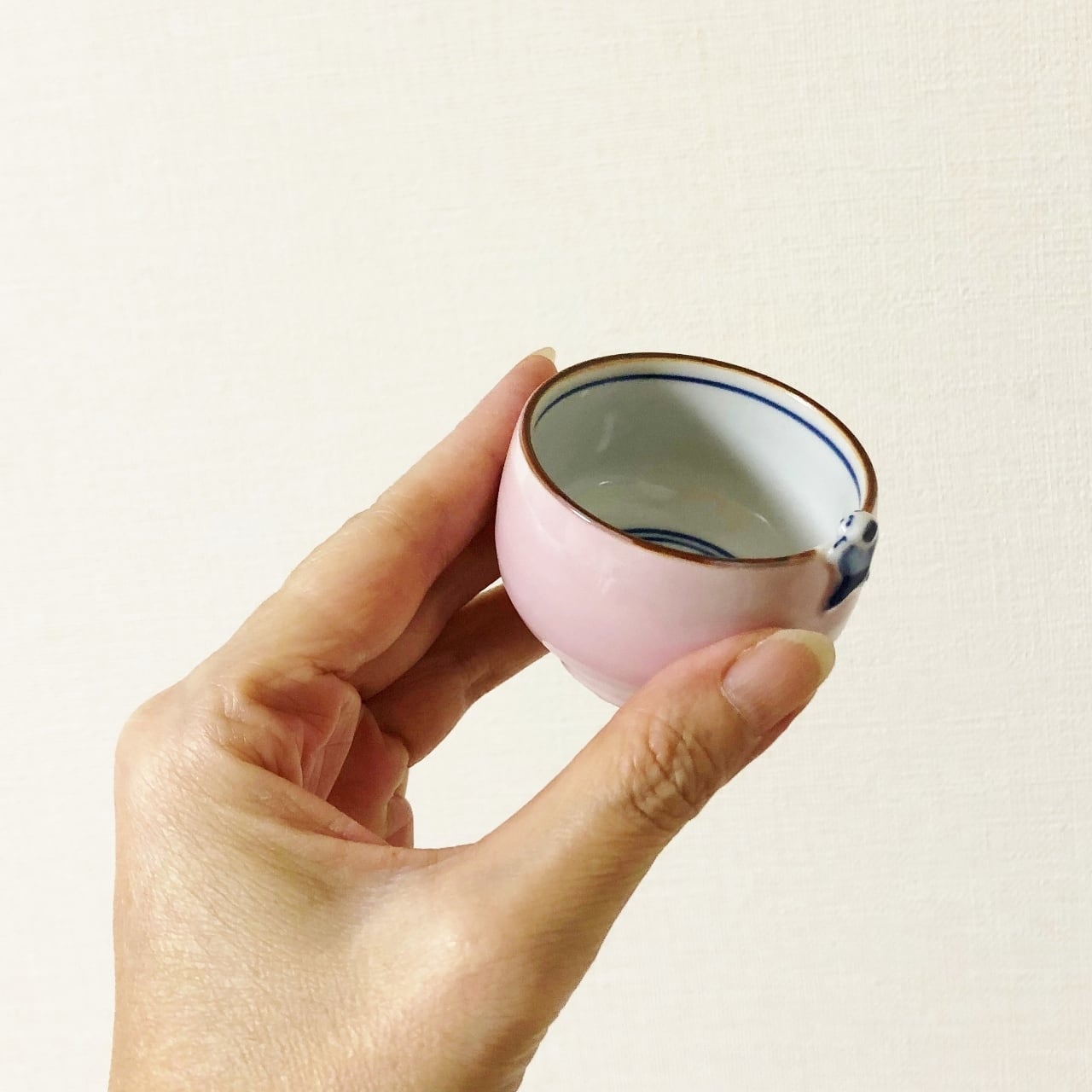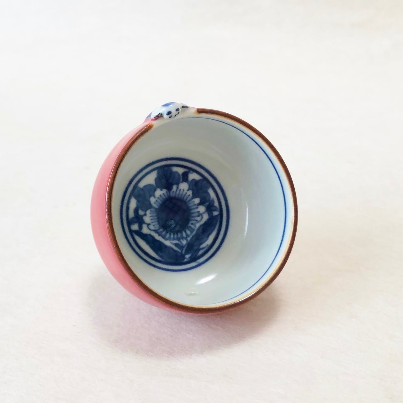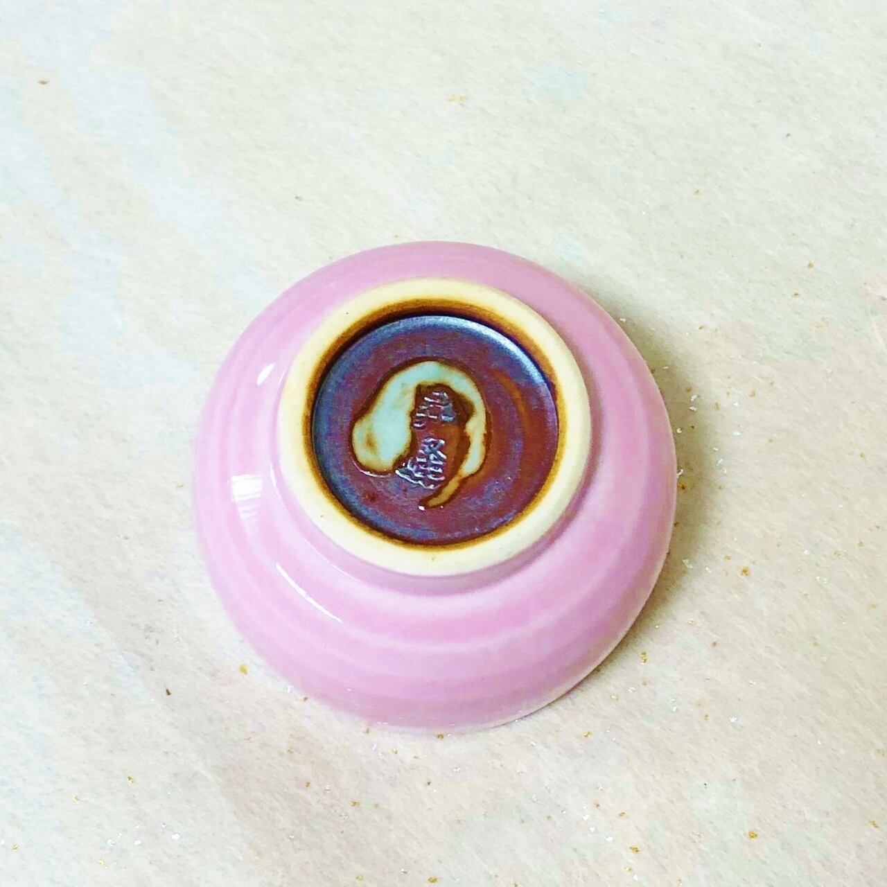 <昇峰窯>色交趾唐子付き ぐい吞み(ピンク)
