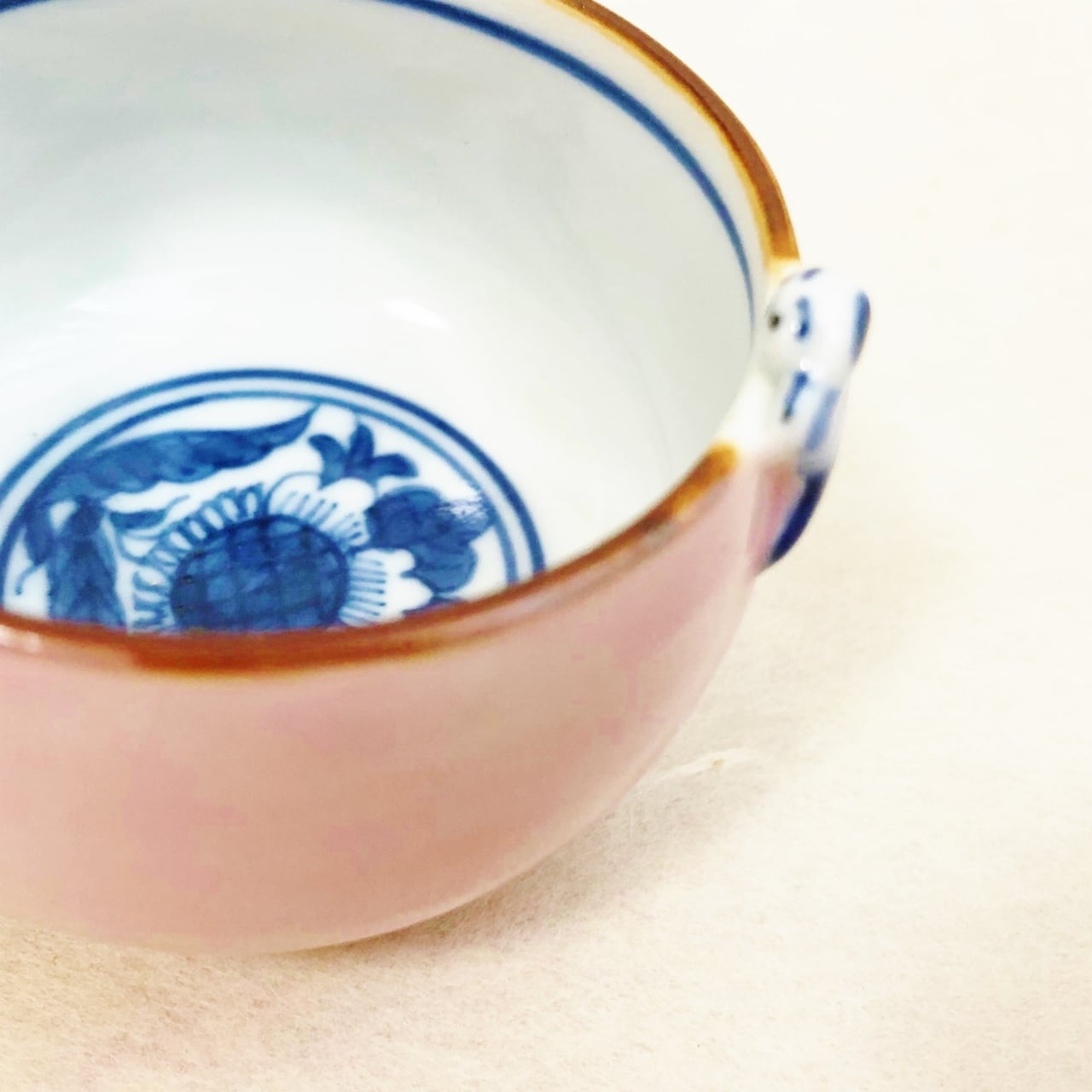 中には染付でお花が描かれていて、それを唐子が可愛いお顔で中を覗いています