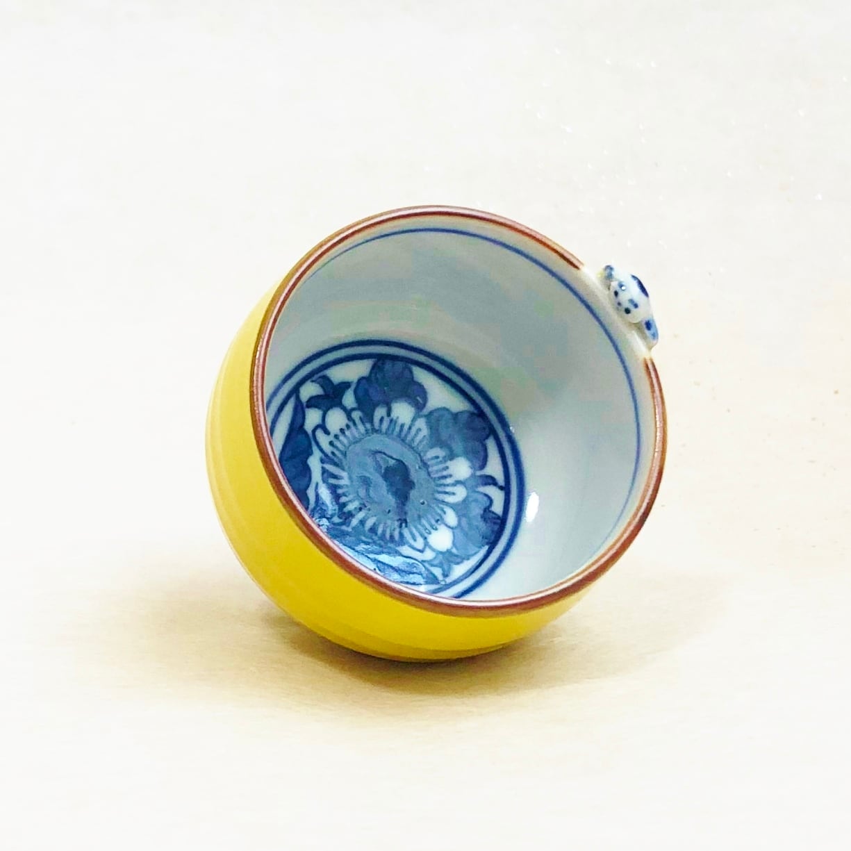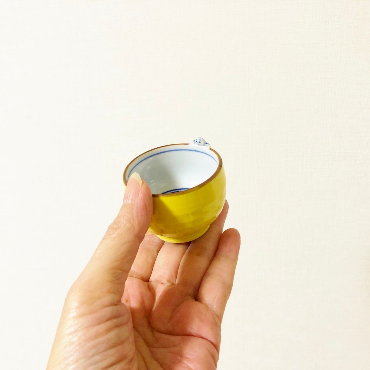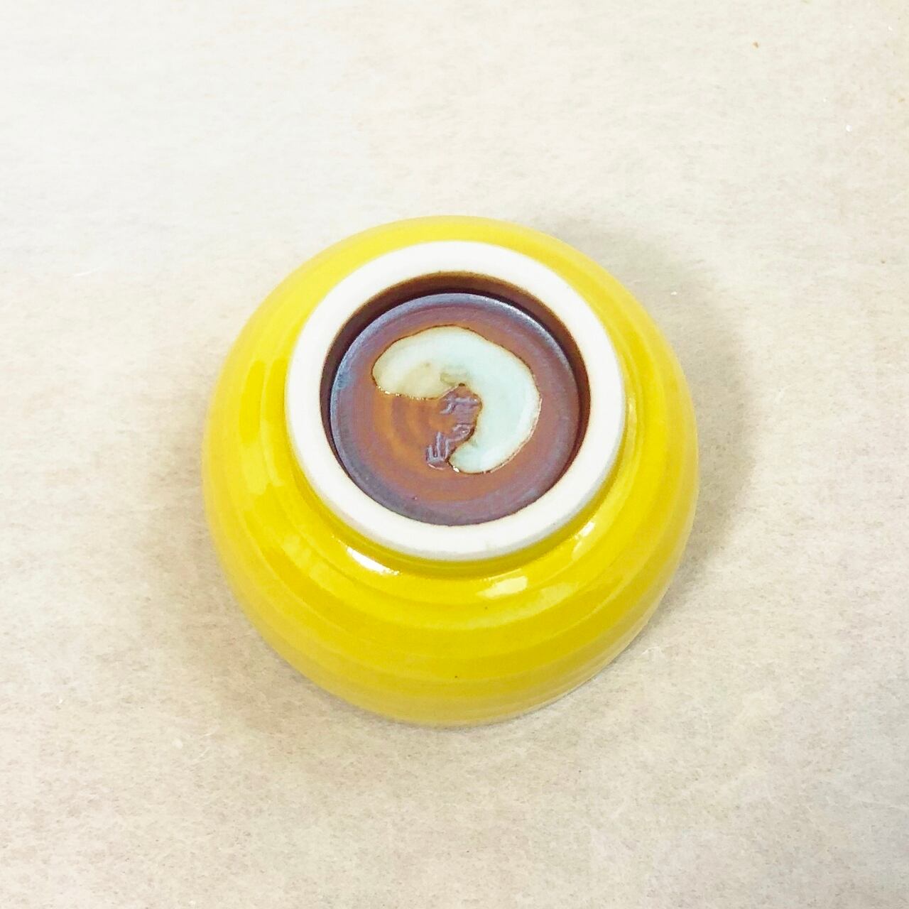 <昇峰窯>色交趾唐子付き ぐい吞み(黄)
