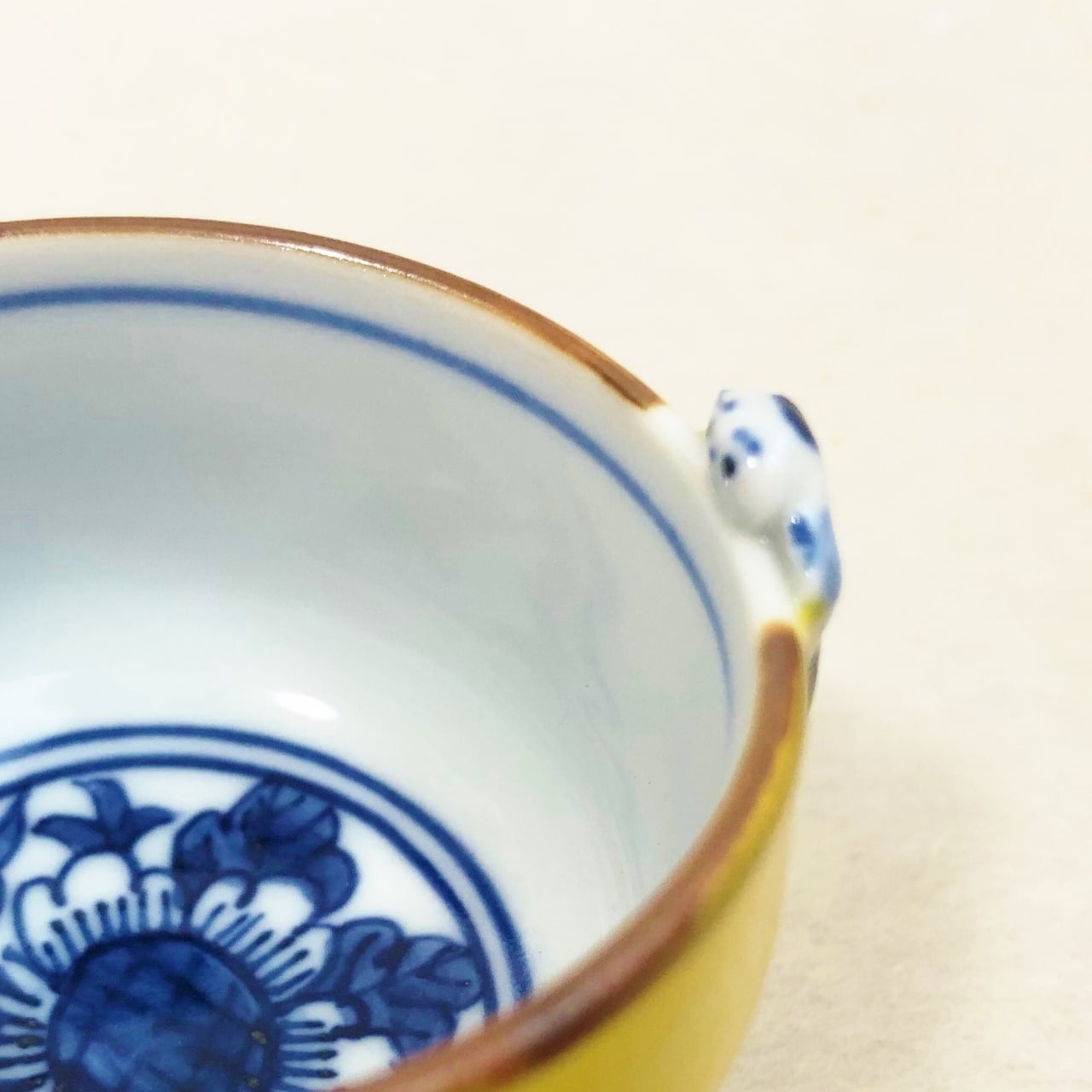 中には染付でお花が描かれていて、それを唐子が可愛いお顔で中を覗いています