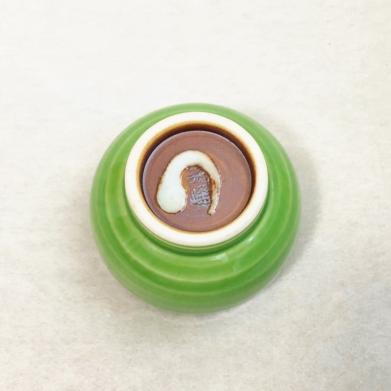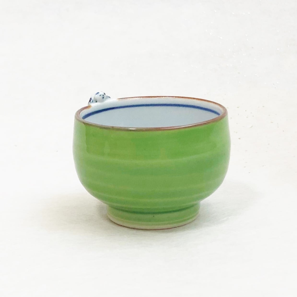 <昇峰窯>色交趾唐子付き ぐい吞み(黄緑)