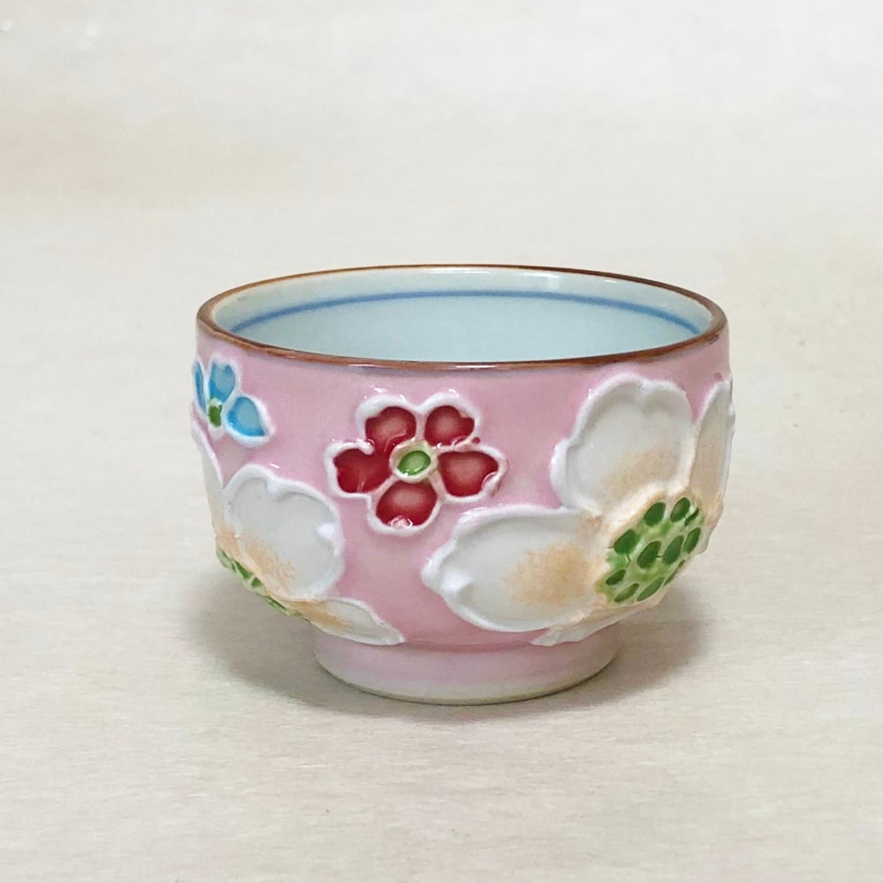 昇峰窯の定番シリーズ<花尽くし>から、ぐい呑み4色をお届けします