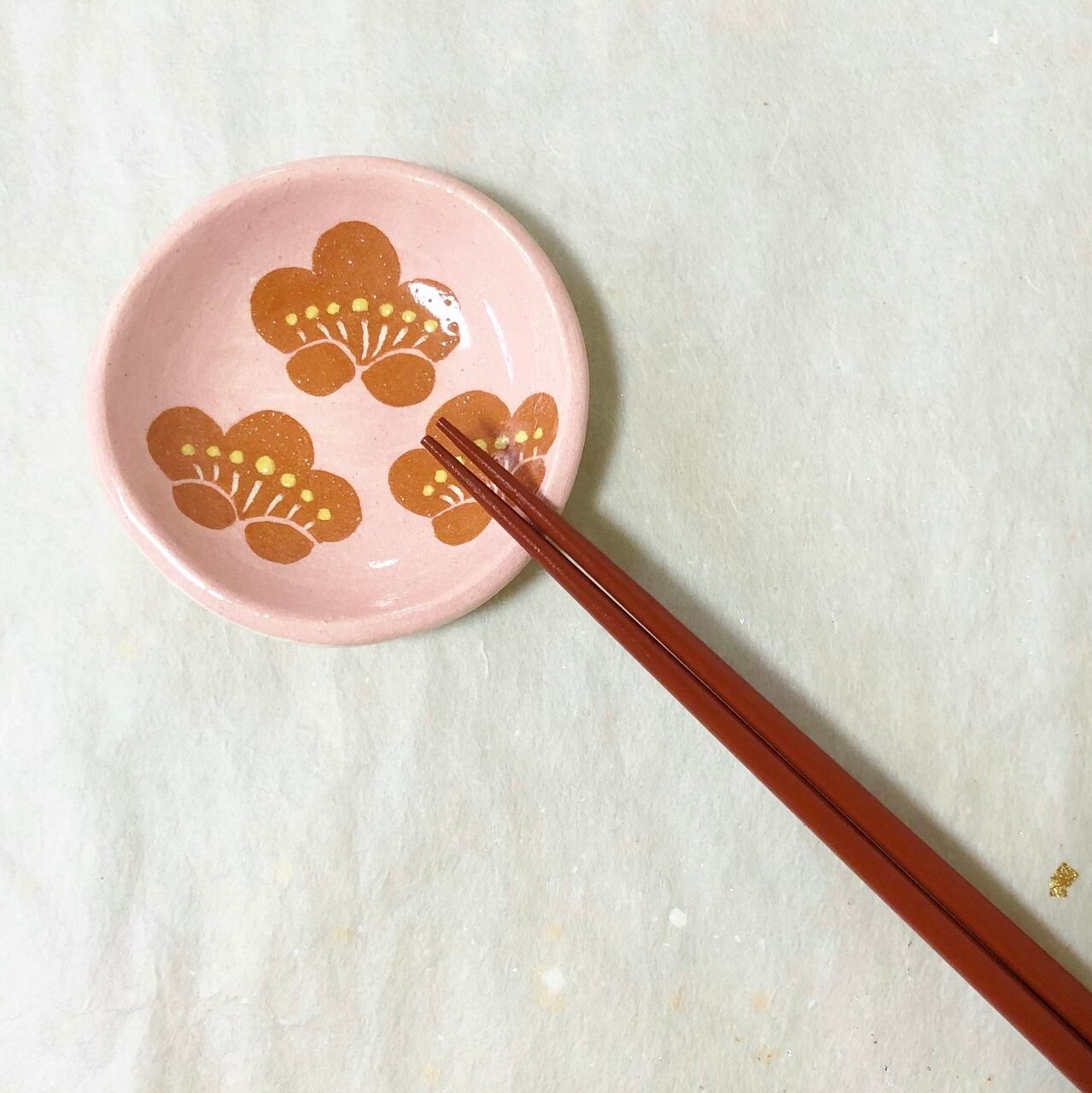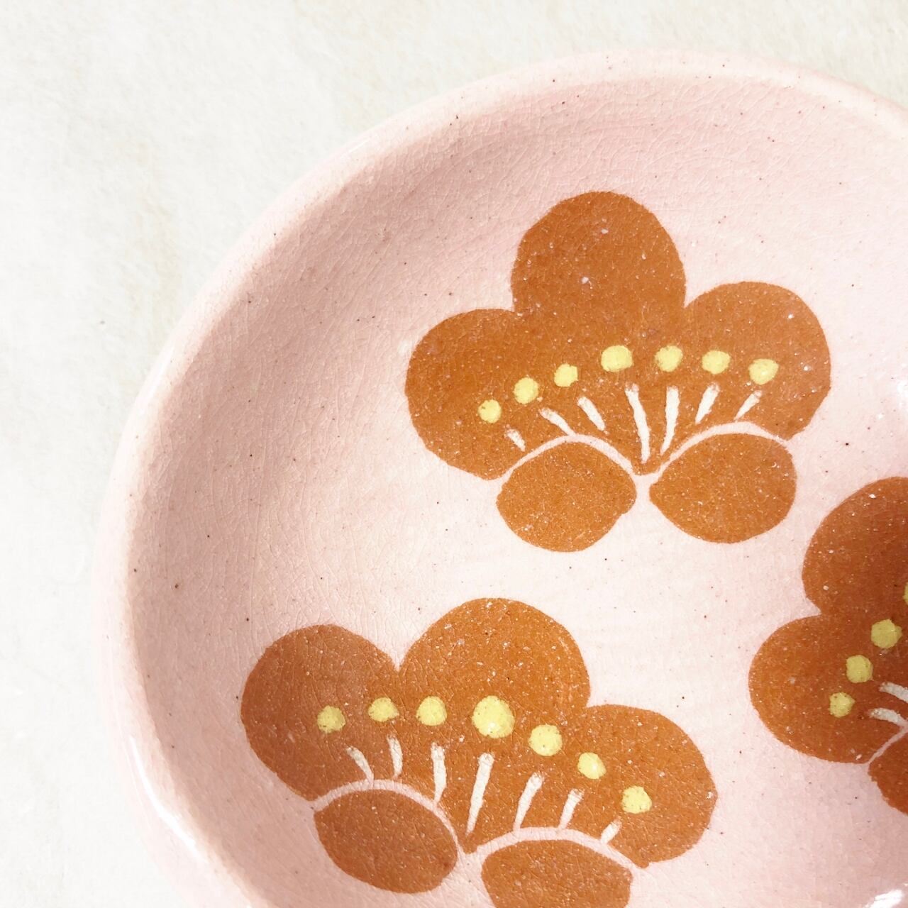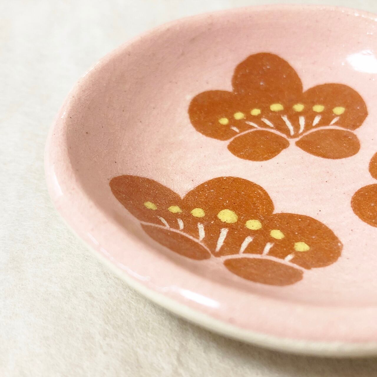 寒い冬に香り高い花を咲かせる紅梅は、「気高さ」 や「長寿」の象徴 ピンク色もとても可愛い豆皿です 専用紙箱に入れてお届けします