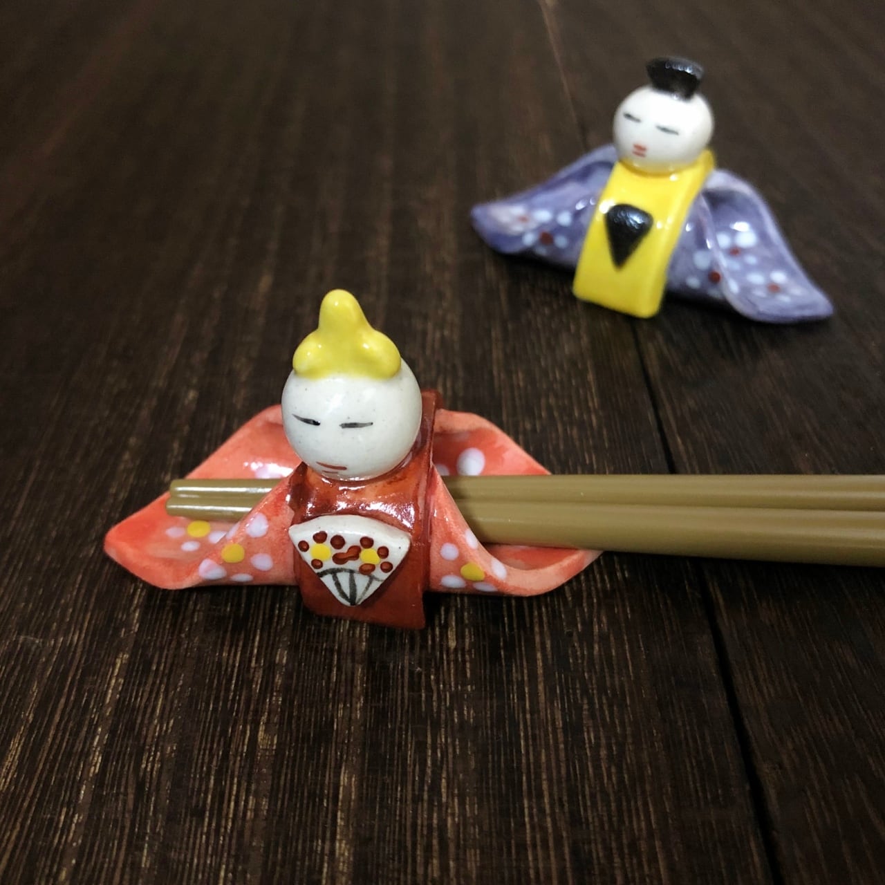 お雛さまのお箸置き 袖にお箸を通して使います