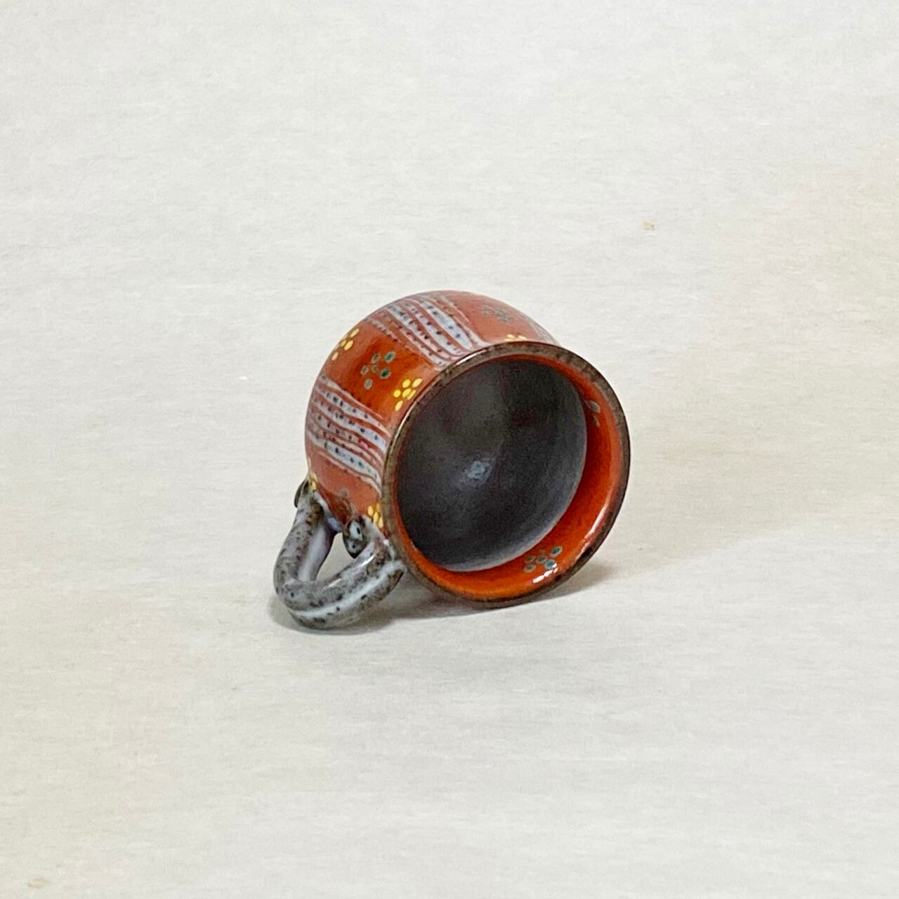 <赫三郎窯>赤絵 ト草梅鉢紋 丸型コーヒー碗皿①