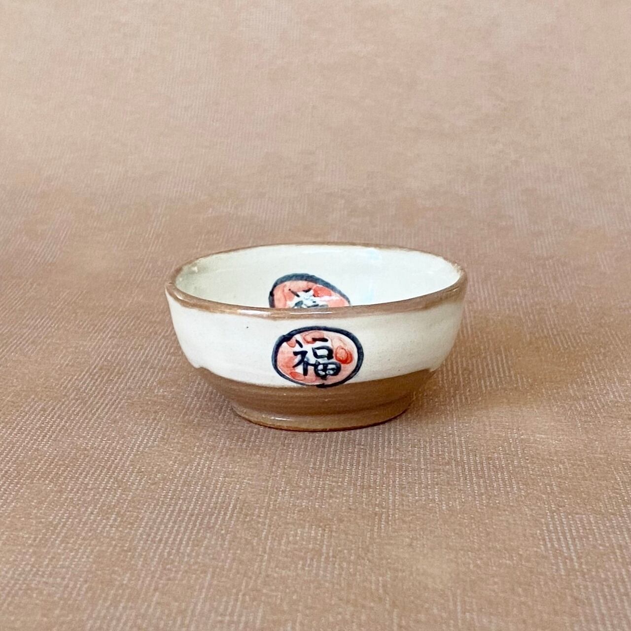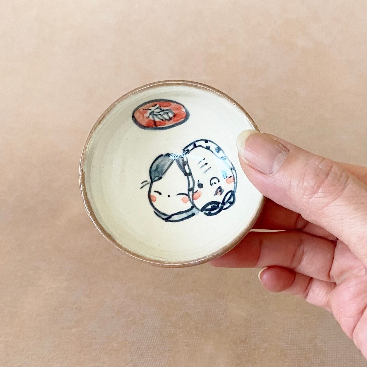 愛らしいおかめとひょっとこの盃 「福」の文字も描かれています