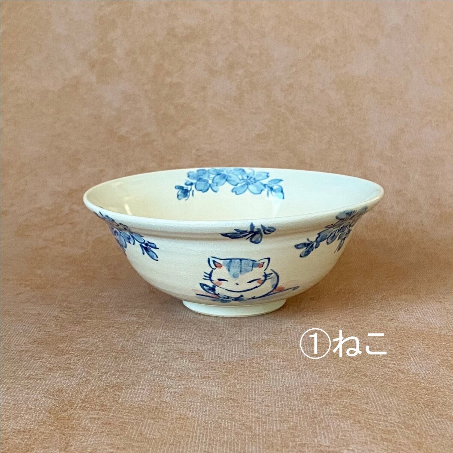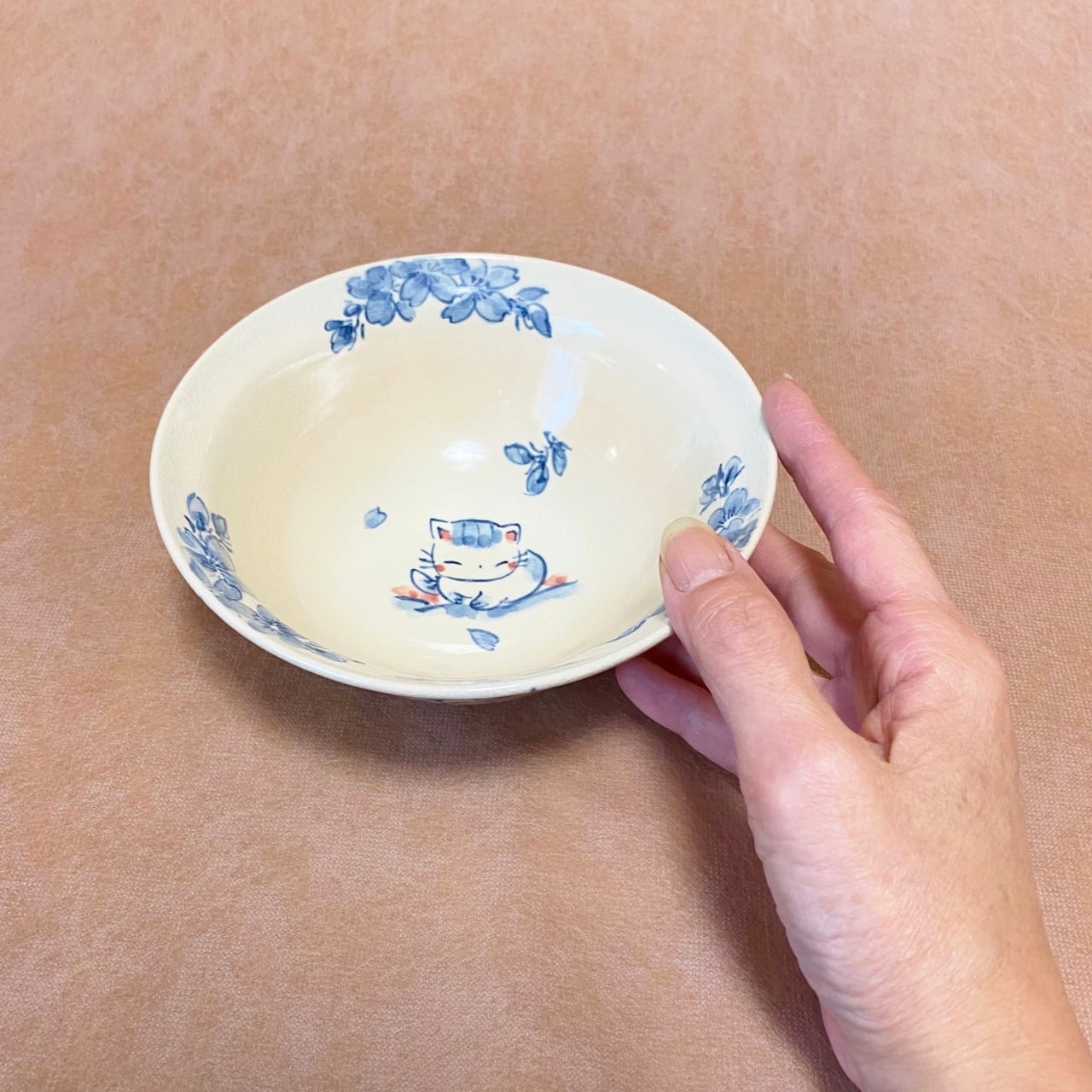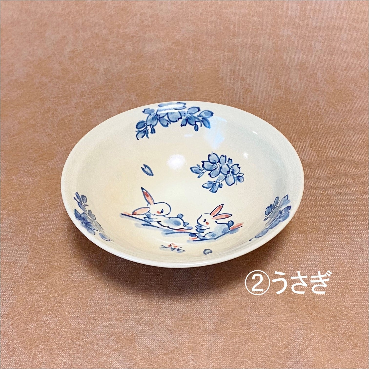 きめ細かい白土で仕上げられた器に、ねことうさぎの2種類の絵付け