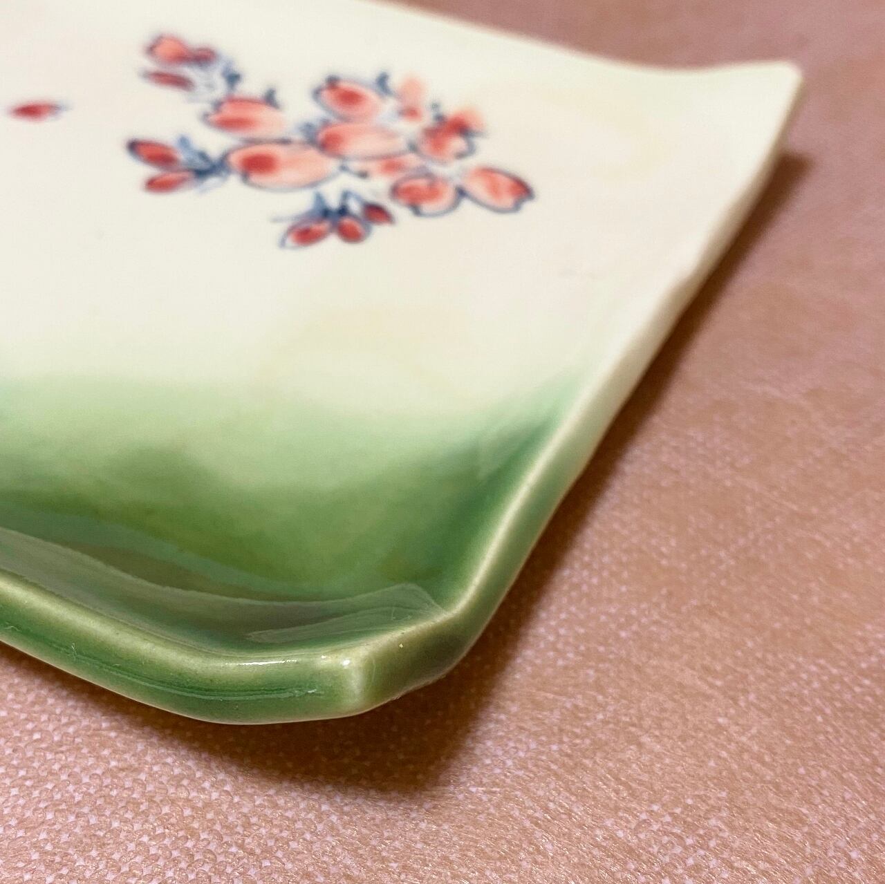 タタラづくりという技法で1枚ずつ板状にしたあと、縁を少し立たせてあります そうすることで、お料理の汁がこぼれることなく見た目もきれいに盛り付けられます