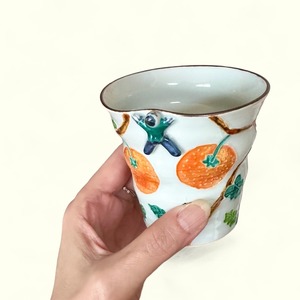 交趾いっちん技法が美しい、秀峰窯の蜜柑柄のフリーカップです