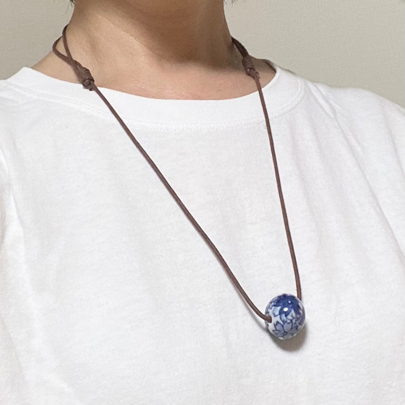 三代続く秀峰窯の伝統工芸士・武内秀峰さんのトップがついた、紐ネックレスです
