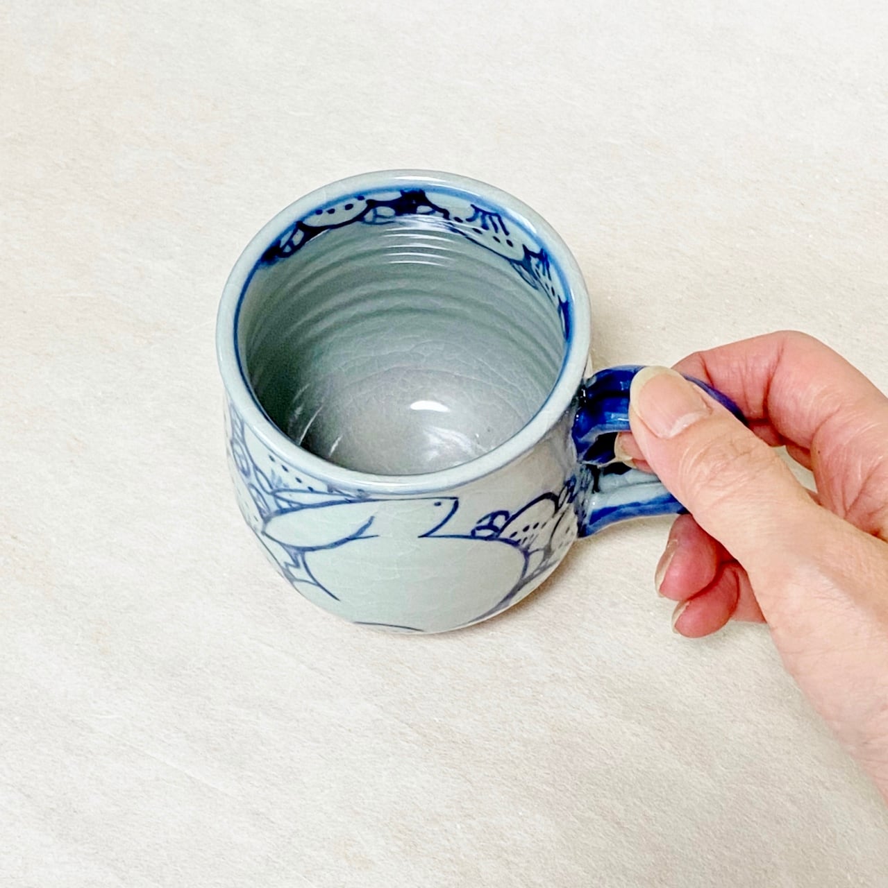 <赫三郎窯>染付 梅うさぎ マグカップ