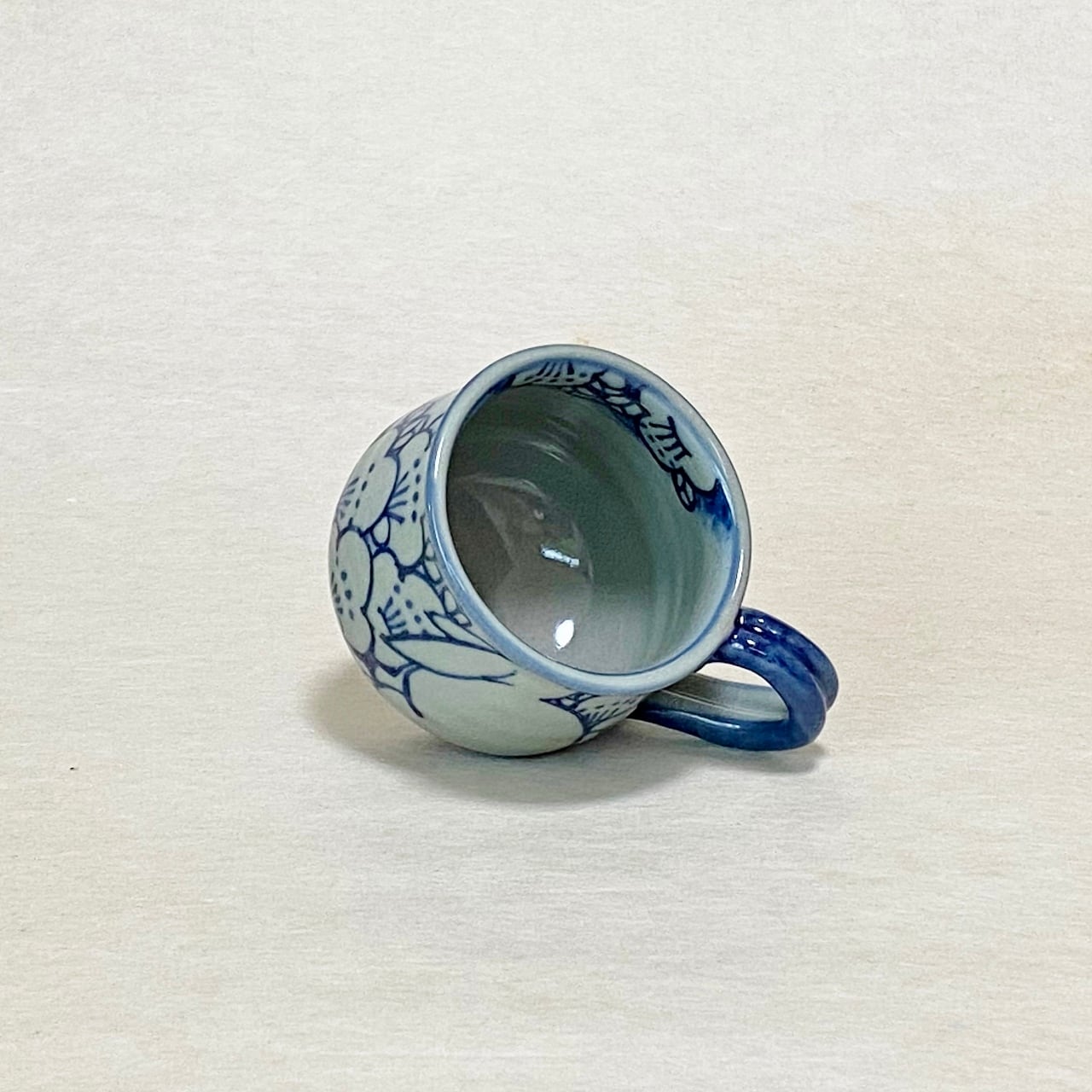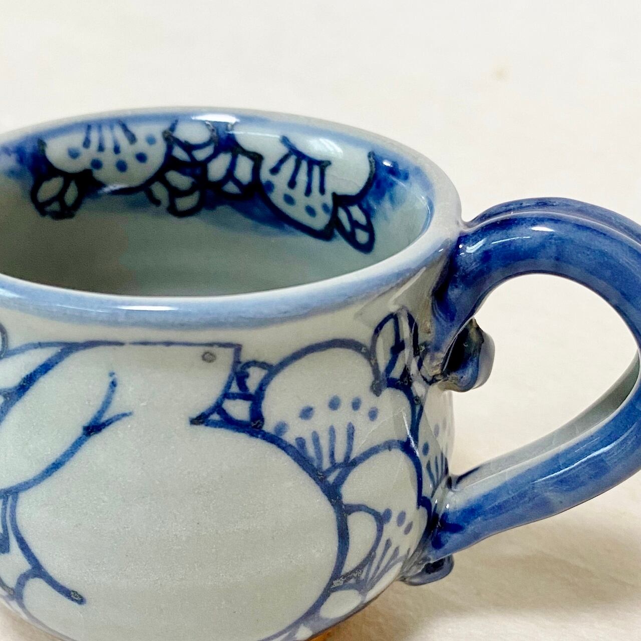 <赫三郎窯>染付 梅うさぎ コーヒー碗皿