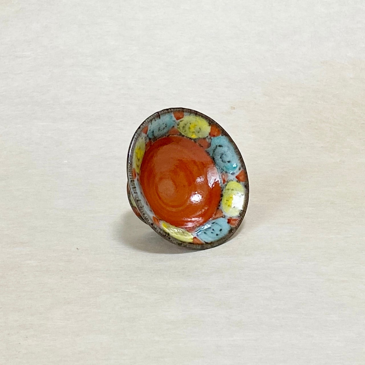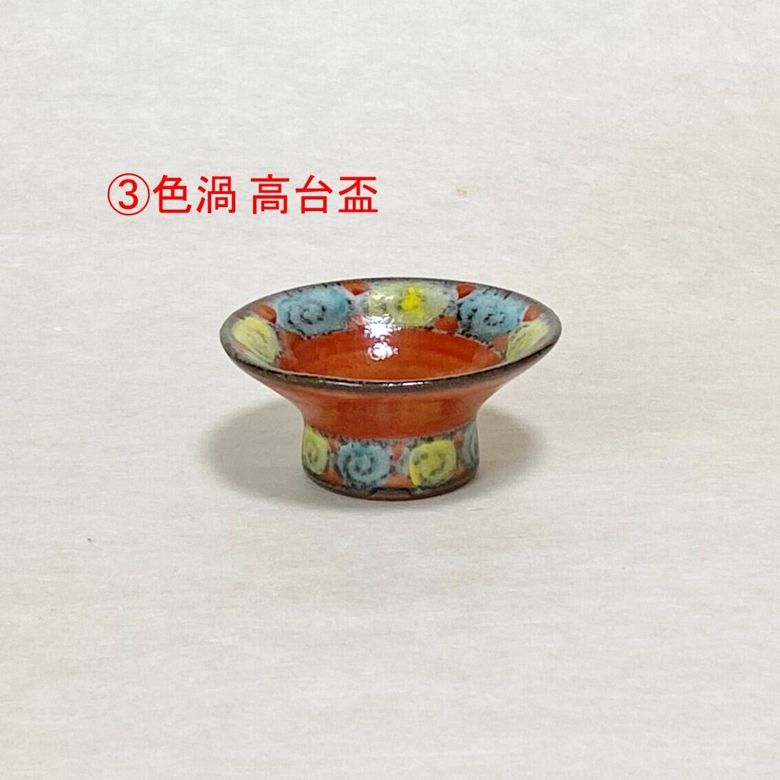 <③赤絵色渦梅鉢紋 高台盃:直径約8.5cm×高さ約4cm>