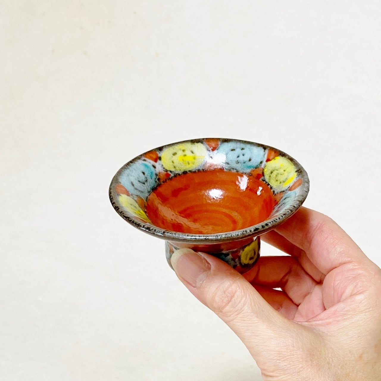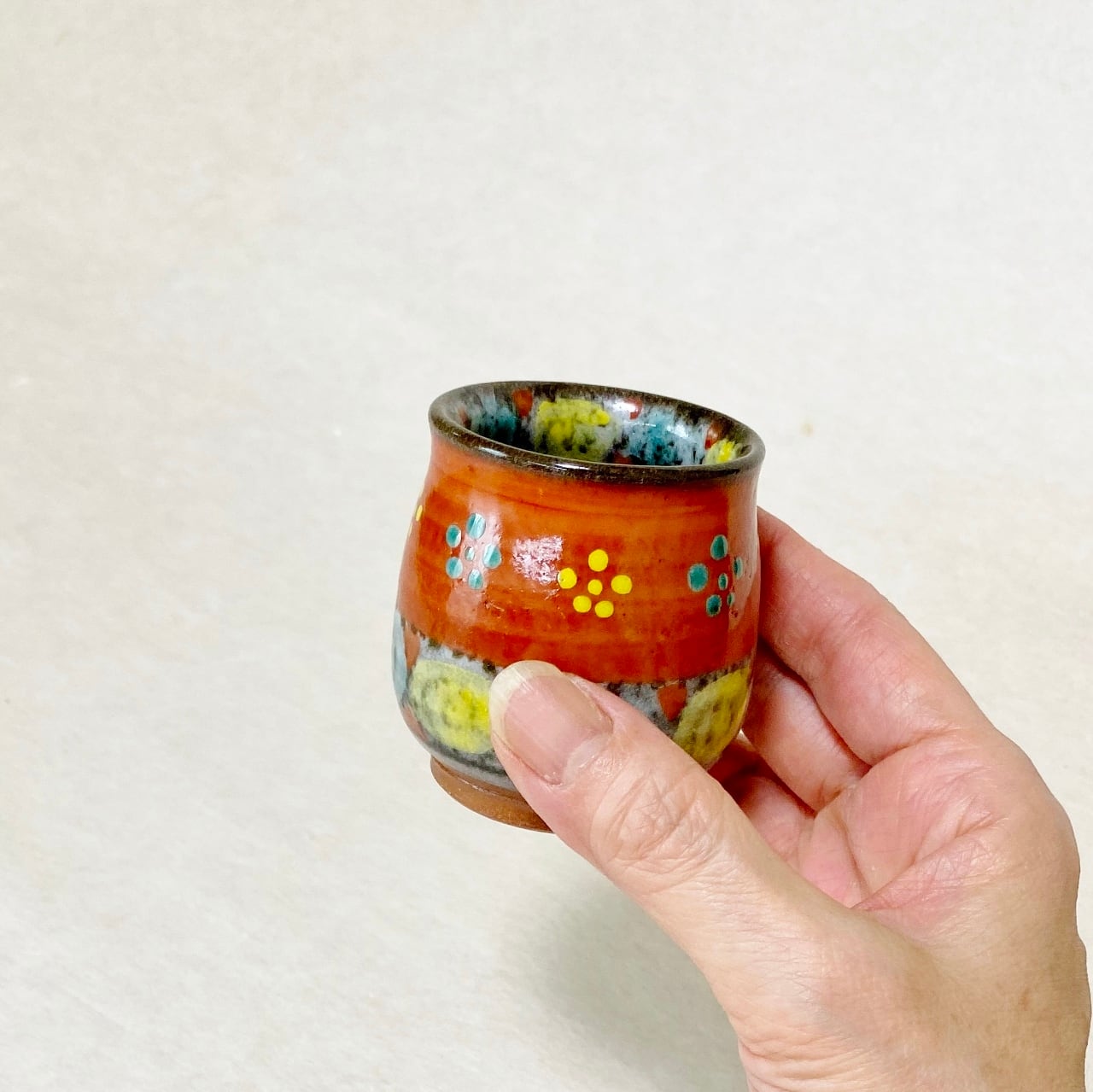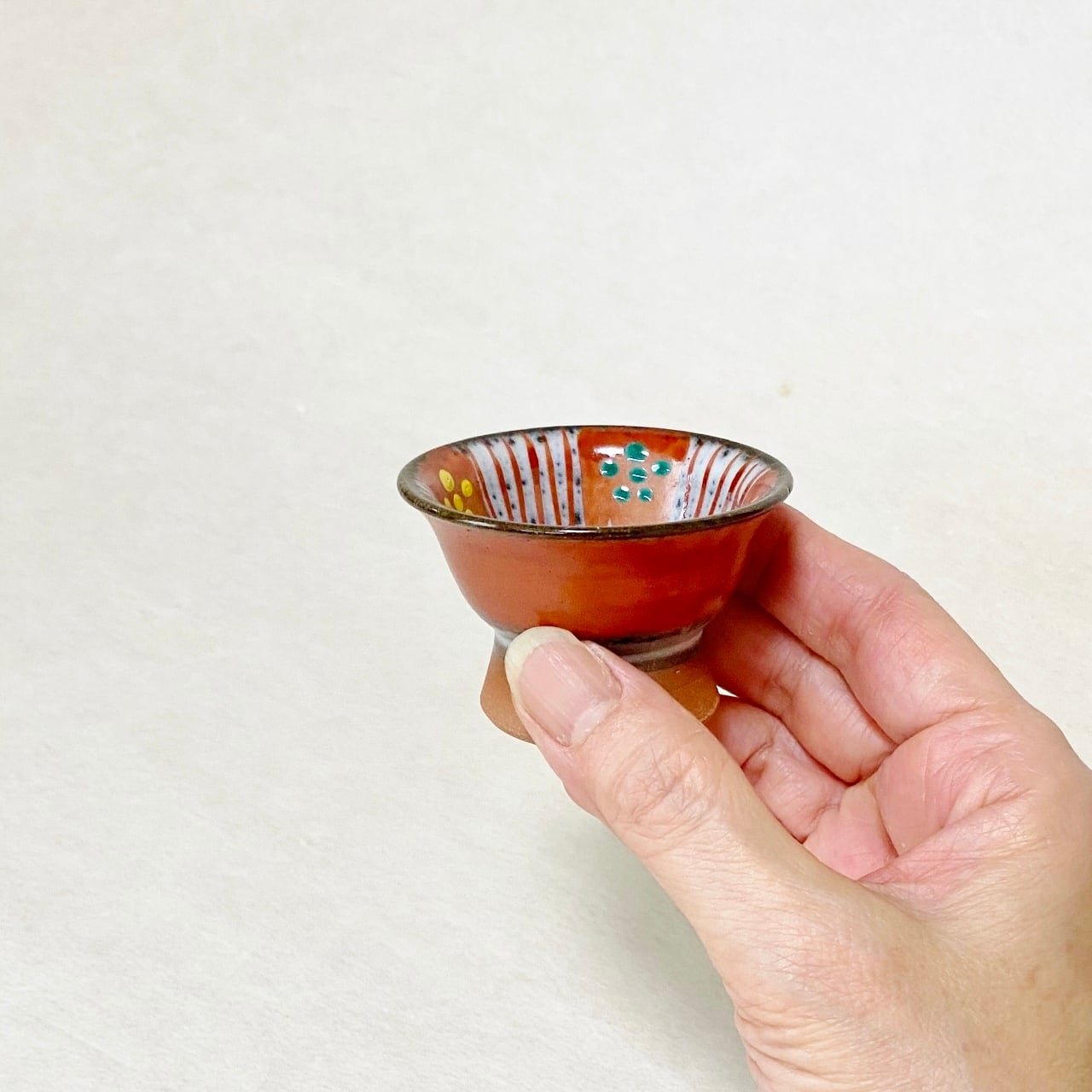 <赫三郎窯>赤絵 高台盃 ぐい吞み(1個)