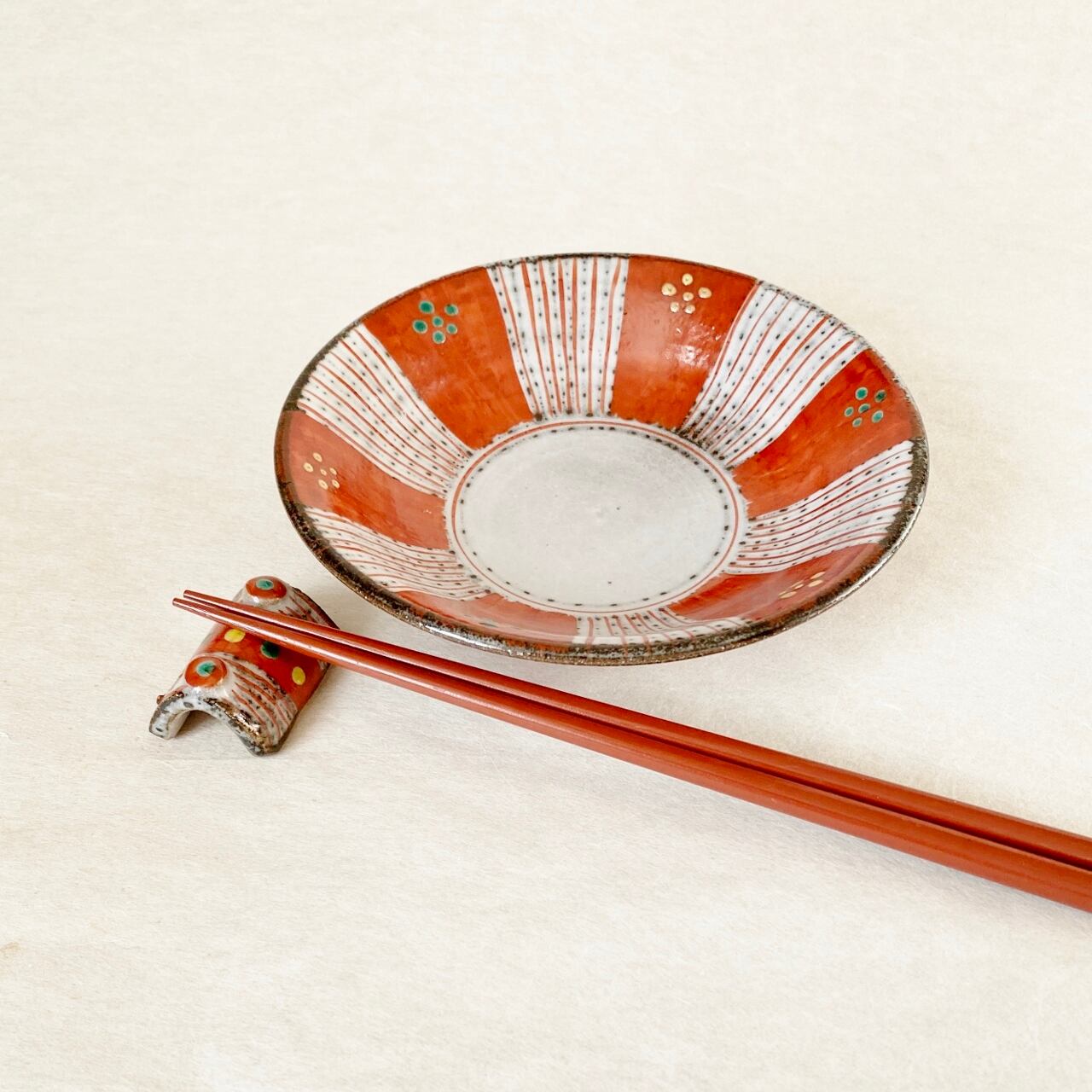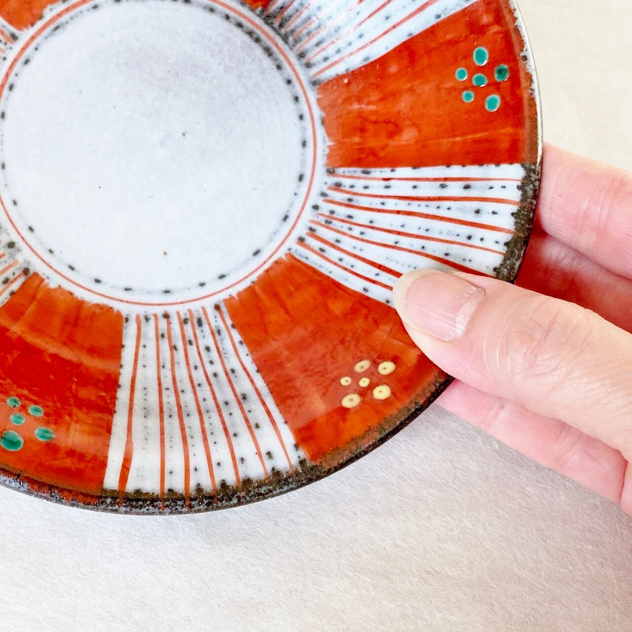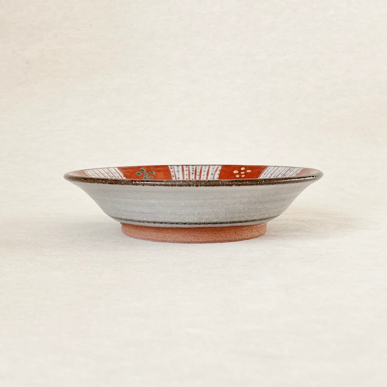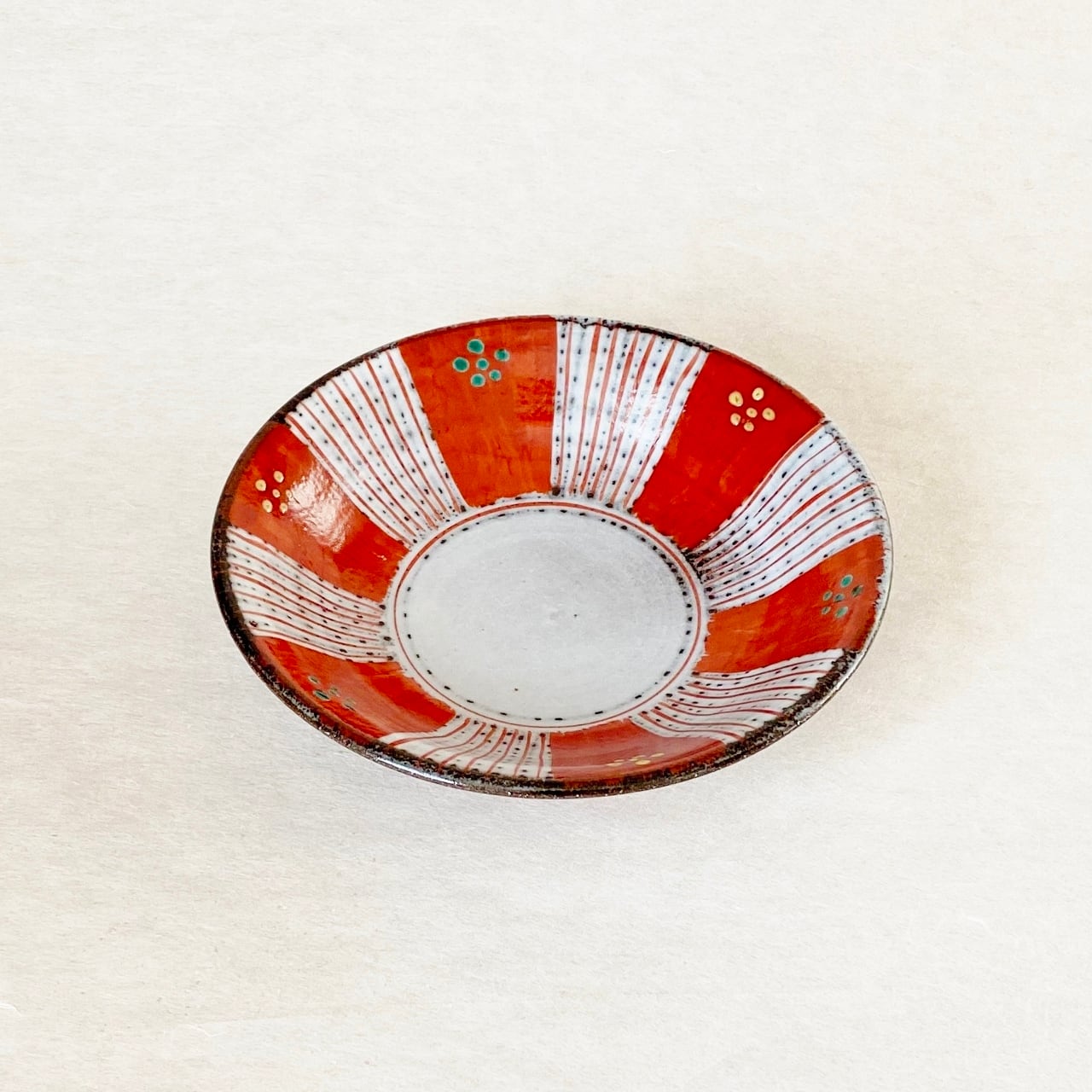 <赫三郎窯>赤絵 ト草梅鉢紋 浅平鉢