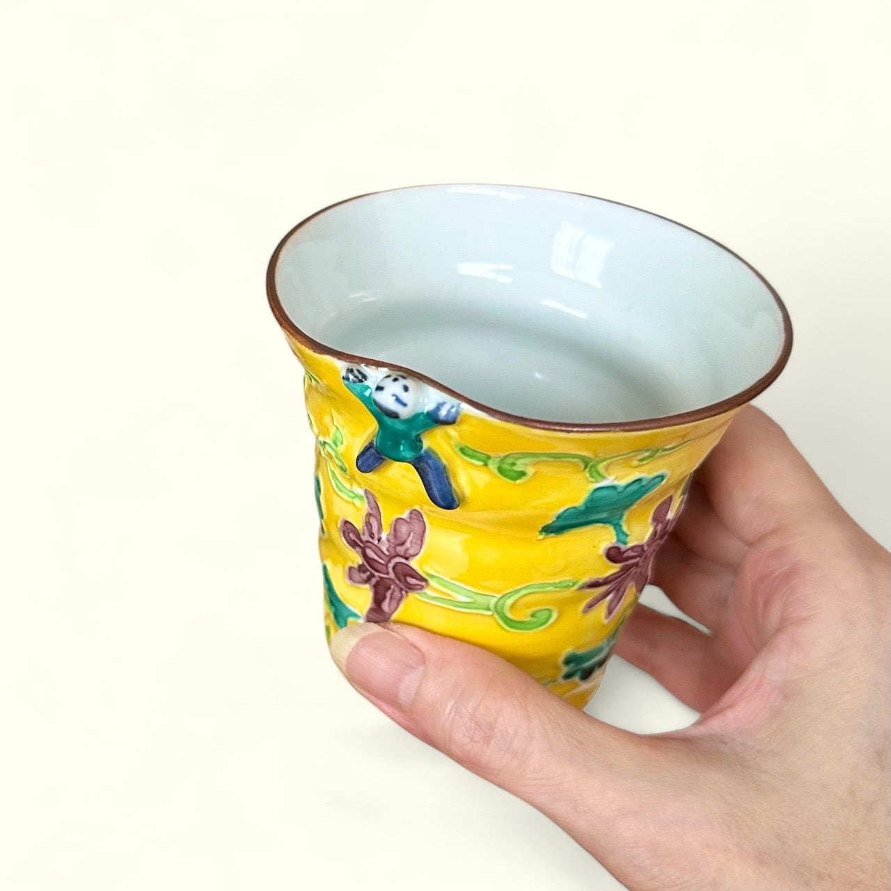 <秀峰窯>黄交趾鉄線 フリーカップ
