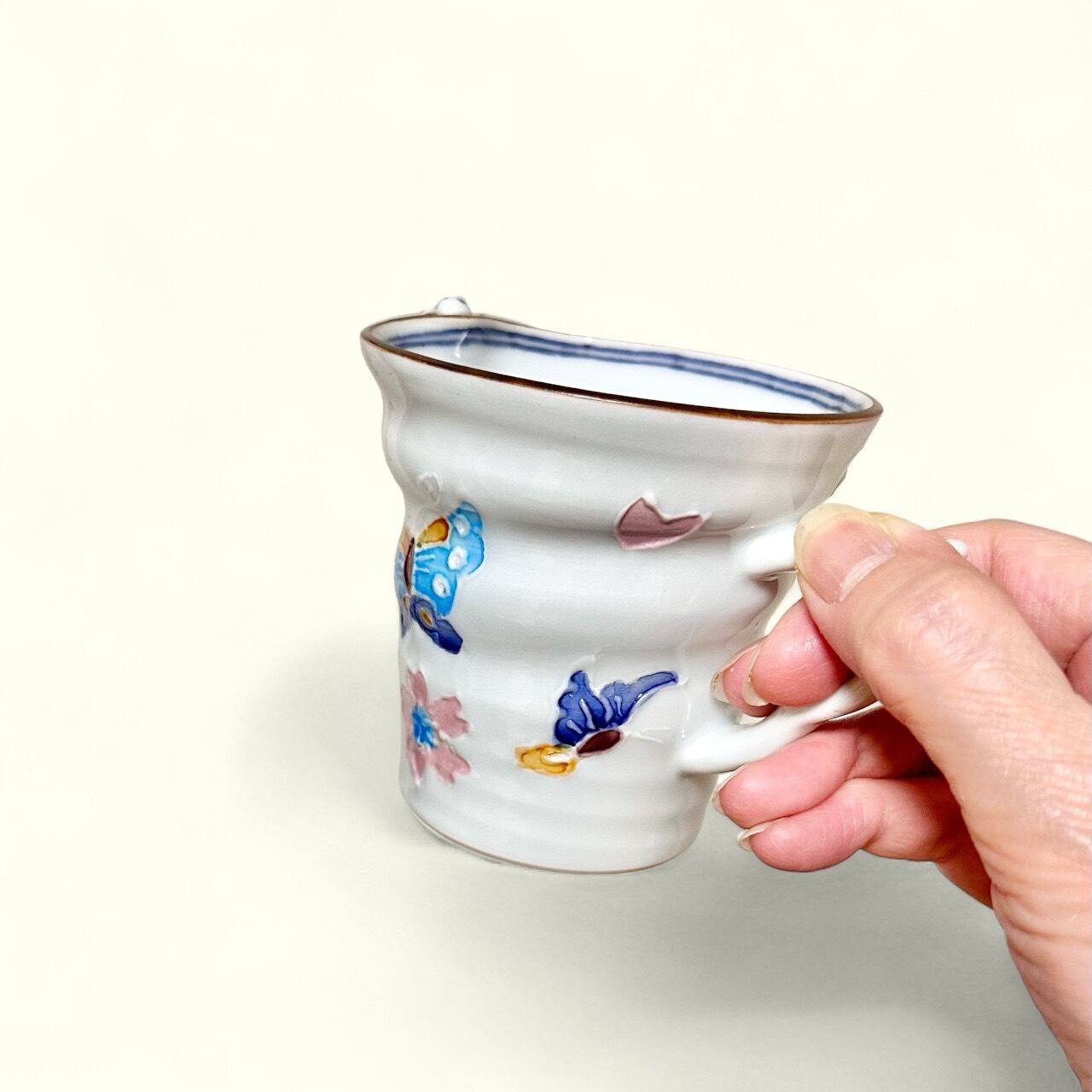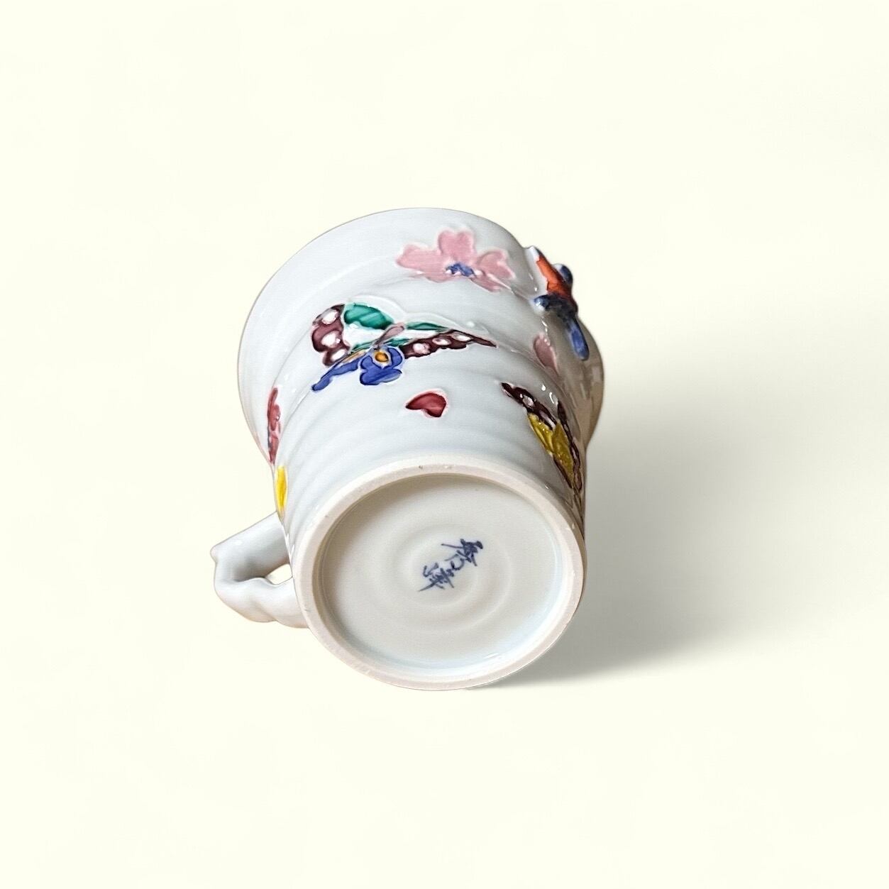 交趾いっちん技法が美しい、秀峰窯の蝶々柄のマグカップです